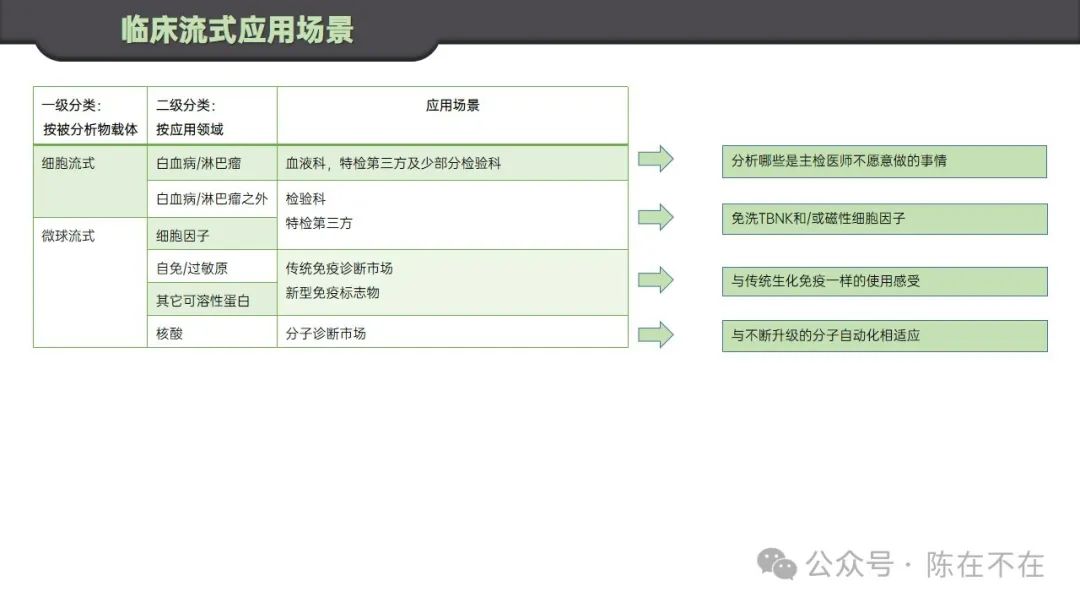 我们再看,临床流式的几种应用场景, 不同的应用场景,医师对自动化的要求不太一样。要注意几点:
