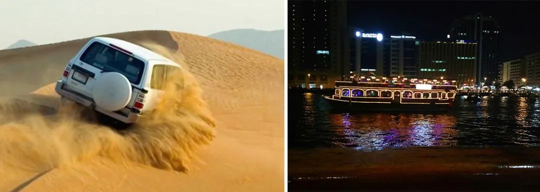 酒店内享用自助早餐,上午酒店内休息,午餐后乘车前往迪拜国际会展中心布展,布展结束后享用晚餐,晚上体验沙漠冲沙/夜海游船,之后返回酒店休息。