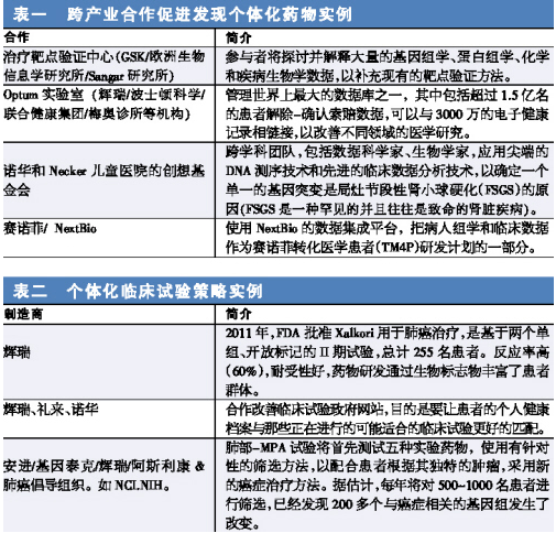一些全球制造商已经推出了个体化药物临床试验的策略,可能会改变药物研究方式,并有可能缩短药物上市的时间和成本。多药、多臂、生物标记物驱动的临床试验是厂商付诸实践的一种策略。美国国立卫生研究院院长基金会的执行董事玛丽亚?弗莱雷(Maria Freire)博士称,这种临床试验设计建立了“更有效地满足患者和药物开发者需求”的一种临床试验模型。“这一战略将验证生物标志物和促进药物开发融为一体,以更快的速度为患者提供更安全,更有效的治疗方法。”