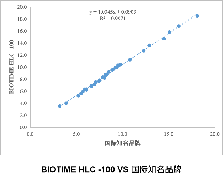 这其实并非首次明确降低检验项目费用,而是全国范围内检验项目费用下调趋势的一个缩影。就今年以来,江西省医保局、济南市医保局、泰安市卫健委、重庆市医保局等均前后发布价格调整的相关通知。 由此可见,常规检验项目在未来大幅降价并实现全国统一收费已是大势所趋,这将进一步推动国产品牌进口替代! 宝太生物深耕POCT体外诊断行业16余年,始终秉持“务实创新,科技服务健康”的使命,致力于技术的持续创新和平台化探索。 目前,宝太生物全新推出全自动糖化血红蛋白分析仪HLC-100,采用行业“金标准”——离子交换高效液相色谱技术(HPLC),极具专业、准确、便捷、小巧等核心优势。 同时,产品配套校准品和质控品,通过严格的量值溯源体系把检测标准传递到用户实验室,拥有IFCC和NGSP双重溯源性认证。与国际知名品牌同类产品相关性结果好,相关系数 r > 0.99,为客户提供全血一管通的自动化解决方案。 ▲ 与国际知名品牌同类产品相关性结果好 相关系数 r > 0.99 • “金标准”HPLC法检测HbA1c • IFCC和NGSP国际双认证 • 检测重复性好,检测范围宽(3.5%-20%) • 提供原厂配套试剂、质控品和校准品 • 半圆盘式进样,占地面积少,减少工作站使用空间 • 智能清洗液路,节约试剂,延长层析柱使用寿命