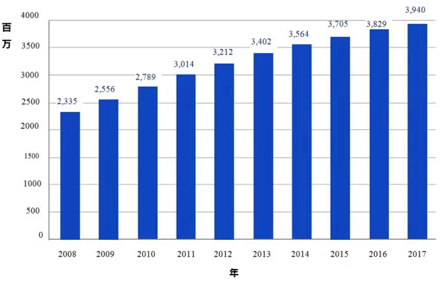 | 原文:mHEALTH IN CHINA AND THE UNITED STATES 原文作者: 工业和信息化部电信研究院:Yu Xiaohui, Han Han, Du Jiadong, Wei Liurong, Li Cheng, Zhang Xueli, Li Haihua,Huang Ying, Sun Ke, Li Na 布鲁金斯学会科技创新中心:Darrell West, Joshua Bleiberg 编者按:本文观点主要来自原作者。Dr.2研究这个报告已经有1个月,报告中不少案例都较老,有些并没有把握我们中国移动医疗市场真实的脉搏。而且报告中不少内容是根据美国人的视角来写的,美国的研究员有的时候低估了我们国内移动医疗生态的进展,他们的很多资料也是来自互联网,或者来自一些咨询公司的研报,一手的调研资料并不太多。虽然我有一些不同的意见,但是我还是尽量把原文摘要分享给大家(原文共有22页,因此做了摘要综述),希望大家批评指正,一起学习。 一、全球和中国的移动市场 从中美两国提炼的数据以及全球趋势来看,我们可以观察到移动医疗最近的发展状态以及新机遇的到来。 自2008年以来移动用户数量急速增长,且在未来长时间内将保持增长趋势。根据GSMA发布的2013年移动经济报告,移动用户数量从2008年的23亿增长到2013年的34亿并且有望在2017年超越39亿(见图1)。 图1:全球移动用户数量