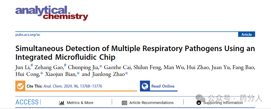 Multiple Respiratory Pathogens Using anIntegrated Microfluidic Chip. Anal.Chem. 2024,96,13768-13776.
