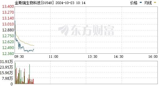 10月22日上午,金斯瑞港股股价大涨11.86%,截至下午三点左右,股价涨幅依旧超过8%,但今天是高开低走。