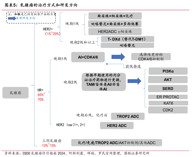 之前,百利天恒将EGFR×HER3双抗ADC药物BL-B01D1授权给百时美施贵宝(BMS),获得8亿美元的预付款,刷新了国产创新药出海的预付款纪录。如今,这一纪录再一次被刷新。9月30日,罗氏旗下基因泰克以8.5亿美元的预付款及其他潜在里程碑收购了锐格医药的下一代CDK抑制剂产品组合。再回溯到去年11月,百济神州以超13亿美元交易总额引进了昂胜医药的CDK2抑制剂ETX-197。上述种种,足见下一代CDK抑制剂的市场价值。特别是罗氏此番出手,其背后的市场洞察与战略意图值得深思。罗氏的算盘打得很响:这次大手笔收购,不仅是对CDK抑制剂的看好,更是其建设乳腺癌生态圈的战略棋局。罗氏在乳腺癌领域的打法十分清晰,通过布局PD-L1、HER2、PI3K、CDK等多种靶点,覆盖了所有的乳腺癌人群(HER2+/HR+/三阴乳腺癌),尤其积极布局占所有乳腺癌病例高达65%-70%的HR阳性乳腺癌。针对三阴性乳腺癌,罗氏的PD-L1单抗Atezolizumab(Tecentriq)在2019年获FDA加速批准用于联合化疗一线治疗无法切除的局部晚期或转移性PD-L1阳性的三阴性乳腺癌,成为首个获批三阴乳腺癌一线的肿瘤免疫疗法。在HER2+乳腺癌治疗中,罗氏获批了多款HER2靶向药,包括曲妥珠单抗、帕妥珠单抗、Kadcyla(T-DM1)、Phesgo(帕妥珠曲妥珠单抗皮下注射),药物类型涵盖单抗、ADC和HER2复合物,适应症覆盖了乳腺癌的早期、晚期、辅助治疗和新辅助治疗等全病程管理。另外,罗氏还布局了双抗和小分子药物,包括用于HER2阳性乳腺癌的HER2/CD3双抗、潜在“best-in-class”的PI3Kα小分子抑制剂Inavolisib(Itovebi,伊那利塞)、第三代口服雌激素受体降解剂(SERD)Giredestrant。其中,Inavolisib在近日获FDA批准上市,与CDK4/6抑制剂Palbociclib(哌柏西利)和氟维司群联用,治疗肿瘤携带PIK3CA突变、内分泌治疗耐药、激素受体(HR)阳性、人类表皮生长因子受体2(HER2)阴性局部晚期或转移性乳腺癌成年患者。Giredestrant正在开展联用CDK4/6抑制剂治疗ER阳性、HER2阴性晚期乳腺癌患者的III期临床试验。在一项Ⅱ期临床试验coopERA中,Giredestrant与Palbociclib(哌柏西利)联用作为新辅助疗法,在治疗早期ER阳性、HER2阴性乳腺癌患者时,与活性对照组相比,可更有效地降低生物标志物Ki67的水平(Ki67的水平昭示了癌细胞的分裂速度)。从各种小分子药物联用CDK4/6抑制剂,到补齐下一代CDK抑制剂这块不可或缺的“拼图”,这一层层递进的战略部署,使得罗氏在乳腺癌治疗的优势不断扩大。CDK抑制剂是巨头必争的大药赛道,市场规模超过百亿美元。2023年,仅辉瑞的哌柏西利、礼来的阿贝西利、诺华的瑞波西利销售额就合计高达107亿美元。根据Nature Reviews Drug Discovery预计,到2029年,CDK4/6抑制剂的市场规模将达到200亿美元,占乳腺癌药物销售市场份额的42%。前有辉瑞、礼来等制药巨头布局,后有中国实力药企卡位抢食。作为国产首款CDK4/6抑制剂,恒瑞医药的达尔西利于2021年获批治疗HR阳性、HER2阴性的经内分泌治疗后进展的复发或转移性乳腺癌,之后又在去年6月拿下一线治疗。目前,达尔西利还在开展HR+/HER2-乳腺癌术后辅助治疗的Ⅲ期研究。涵盖一线、二线、术后辅助,CDK4/6抑制剂不断渗透HR阳性HER2阴性乳腺癌全病程管理。然而,这还不是CDK抑制剂的终点。因为CDK4/6抑制剂并非完美,存在耐药、副作用问题,比如中性粒细胞减少、骨髓抑制。当然,这些缺陷也给下一代CDK抑制剂留下了突围机会,同时也是罗氏进场的契机。在CDK家族成员中,CDK4与CDK6共同参与细胞周期调控,但功效与毒性分工明确。其中,CDK4/6抑制剂的临床治疗功效主要由CDK4驱动,而CDK6被认为更多与治疗毒性相关。此外,CDK2可能与CDK4/6的耐药机制有关,有助于解决CDK4/6抑制剂的耐药问题。由此,CDK2抑制剂、CDK4抑制剂、CDK2/4/6抑制剂等下一代CDK抑制剂应运而生。现阶段,CDK抑制剂争夺战进入了白热化阶段:百济神州引进了昂胜医药的口服CDK2抑制剂ETX-197,罗氏选择大手笔收购锐格医药,将下一代CDK抑制剂产品组合纳入囊中(CDK2抑制剂QR-6401、CDK2/4/6抑制剂RGT-419B)。另外,辉瑞研发了CDK2抑制剂PF-07104091和CDK4抑制剂Atirmociclib(PF-07220060),中国生物制药子公司正大天晴研发了CDK2/4/6抑制剂TQB3616,恒瑞和百济均布局了CDK4抑制剂:HRS-6209、BGB-43395。显然,下一代CDK抑制剂新药研发又是一场属于强者的角逐,入局者皆实力不凡。那么,罗氏又将以何种卓越能力,在这场较量中占据一席之地?在强者如林的CDK抑制剂市场中抢食,罗氏确实要花费一番功夫。辉瑞、礼来、诺华的CDK4/6抑制剂都是年销售额超过20亿美元的“重磅炸弹”。其中,辉瑞的哌柏西利受专利到期影响销售额已出现下滑,但阿贝西利、瑞波西利均处在快速放量的状态,2023年销售额同比分别增长达56%、69%。为了延长哌柏西利的生命周期,辉瑞采取联合疗法策略,开展了许多联用哌柏西利的临床试验,比如哌柏西利+氟维司群、哌柏西利+Vepdegestrant(ARV-471)等。其中,ARV-471是辉瑞和Arvinas联合开发的新型口服、靶向ER的蛋白降解剂(PROTAC),目前单药二线治疗ER+/HER2-晚期乳腺癌(VERITAC-2)以及联合哌柏西利对比标准治疗(来曲唑+哌柏西利)一线治疗ER+/HER2-局部晚期乳腺癌(VERITAC-3)均已处于III期阶段。在下一代CDK抑制剂,辉瑞研发了CDK2抑制剂PF-07104091和CDK4抑制剂Atirmociclib。其中,Atirmociclib是首创(first-in-class)CDK4抑制剂,目前处于III期临床,在2024 ESMO BC年会上披露的首次人体I/IIa期研究结果中,展现了治疗经CDK4/6抑制剂治疗进展的HR+/HER2-