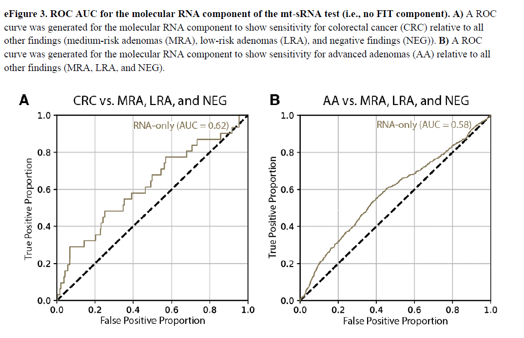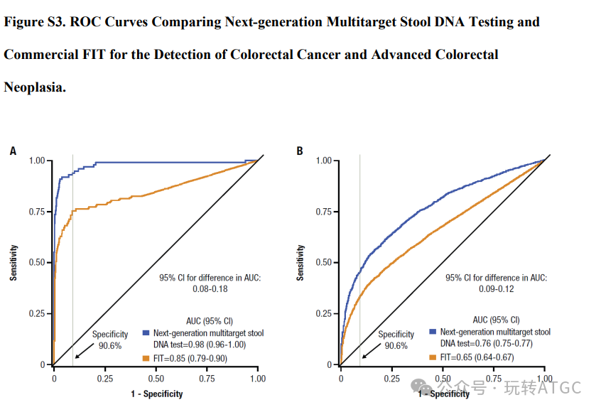 可以对比一下Cologuard Plus的结果:其整体的AUC分别达到了0.98和0.76,性能明显优于ColoSense。