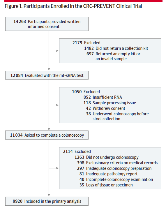 初始纳入了14263个,因为各种原因,后续只有8920个样本(既做了ColoSense检验,又做了肠镜)可用。
