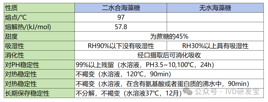 Hello啊,宝子们!最近在群聊中发现有宝子们的胶体金层析产品在热加速或常温放置一段时间后出现了结合垫中金标颗粒释放不了的问题,像是被什么东西给牢牢固定了,导至金标颗粒无法正常的进行层析!为什么会出现这样的现象那?本期内容就来讲讲我的猜测以及具体的原理,不足之处欢迎广大宝子们批评指正! 蔗糖这边没有查到具体的数据,但是有资料记载和海藻糖一样具有吸湿的性质。这点非常重要。 从得到的海藻糖的物化性质中我们可以明显看到二水合海藻糖在相对湿度RH90%以下没有吸湿性,而无水海藻糖在RH30%以上就具吸湿性! 2.2 当发生吸湿现象时,糖会发生什么变化? 因为我们研究的是将糖晶体溶解到溶液中,然后再干燥的结合垫上之后的固态糖的吸湿性。因此就需要知道在经过这样一番操作后的几种糖有什么区别。 首先是无水海藻糖:无水海藻糖溶液经过高温干燥到结合垫上后,因为分子内不含结晶水所以相对比二水合海藻糖更具有吸湿性质,这意味着它能够从周围环境中吸收水分。 其次是二水合海藻糖:二水合海藻糖失去结晶水的温度通常在100°C左右,因此二水合海藻糖溶液经过高温干燥到结合垫上后,因为实际干燥温度不可能会在100℃,因此结合垫上糖的纯在形式可能仍然是二水合海藻糖。因为其分子内含有结合水因此其在环境中的吸湿性明显低于无水海藻糖! 再者是蔗糖:蔗糖因暂未查到具体数据无法进行比较,但其应该也具有相同的吸湿性质。 那么当发生吸湿现象时,糖会发生什么变化? 1)结块 随着吸湿量的增加,无水海藻糖颗粒之间会因为水分的存在而粘连在一起,形成硬块或团块。这会严重影响其流动性和均匀分散的能力。 2)流动性降低 原本自由流动的无水海藻糖,在吸湿后由于颗粒之间的黏附作用增强,导至整体流动性显著下降,这对于需要保持良好流动性的金标颗粒可能是致命的! 3)溶解度变化 尽管吸湿后的无水海藻糖仍然可以溶解于水中,但其溶解速率和最终溶液的状态可能会受到影响。比如,如果形成了较大的结块,则这些结块可能需要更长时间才能完全溶解。 4)微生物生长 虽然吸湿本身不会直接改变无水海藻糖的基本化学结构,但在高湿度环境下长期储存可能导至其他化学反应的发生,例如微生物生长或是与空气中某些成分发生相互作用,从而影响其品质和功能特性。 3.如何解决这现象?