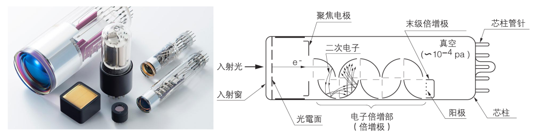 定量PCR设备的荧光检测元件常见的有两种,光电倍增管(PMT)和CCD/CMOS芯片。光电倍增管是依据光电子发射、二次电子发射和电子光学的原理制成的、透明真空壳体内装有特殊电极的器件。