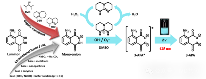 酶促化学发光免疫分析主要是将酶标记在抗原、抗体、配体或受体上进行免疫反应,随后免疫复合物上的酶作用于发光底物产生发光,最终通过发光信号测定仪进行测定。化学发光的强度由酶的浓度决定。辣根过氧化物酶(HRP)和碱性磷酸酶(ALP)是常用的标记酶,而鲁米诺和AMPPD则是代表性的发光底物。 鲁米诺是一种强效的化学发光物质,通常在中性溶液中以偶极离子(两性离子)形式存在。在碱性溶液中,它转变为二价负离子,并可被氧分子氧化为能产生化学发光的中间体。在氧化剂的作用下,鲁米诺被转化为激发态,随后激发态衰变回基态并发出荧光。鲁米诺发光的原理与羰基化合物的亲核加成相关,产生的荧光为蓝光,波长为425nm左右。这类化合物的发光特性为辉光型,发光时间可持续30~60min,启动发光反应后约2min发光强度达到最大。因此反应时间较长。由于底物在没有酶的情况下也有一定的发光因此一般本底较高;酶促反应可以放大发光过程,酶促化学发光一般灵敏度较高(样本的阴阳性分的较开);酶促化学发光对酶的纯度和工艺较高,标记物成本会略高;酶分子量较大,可能引起免疫反应导至产生抗体,需要警惕酶分子引起的假阳性。(个人观点,仅供参考)