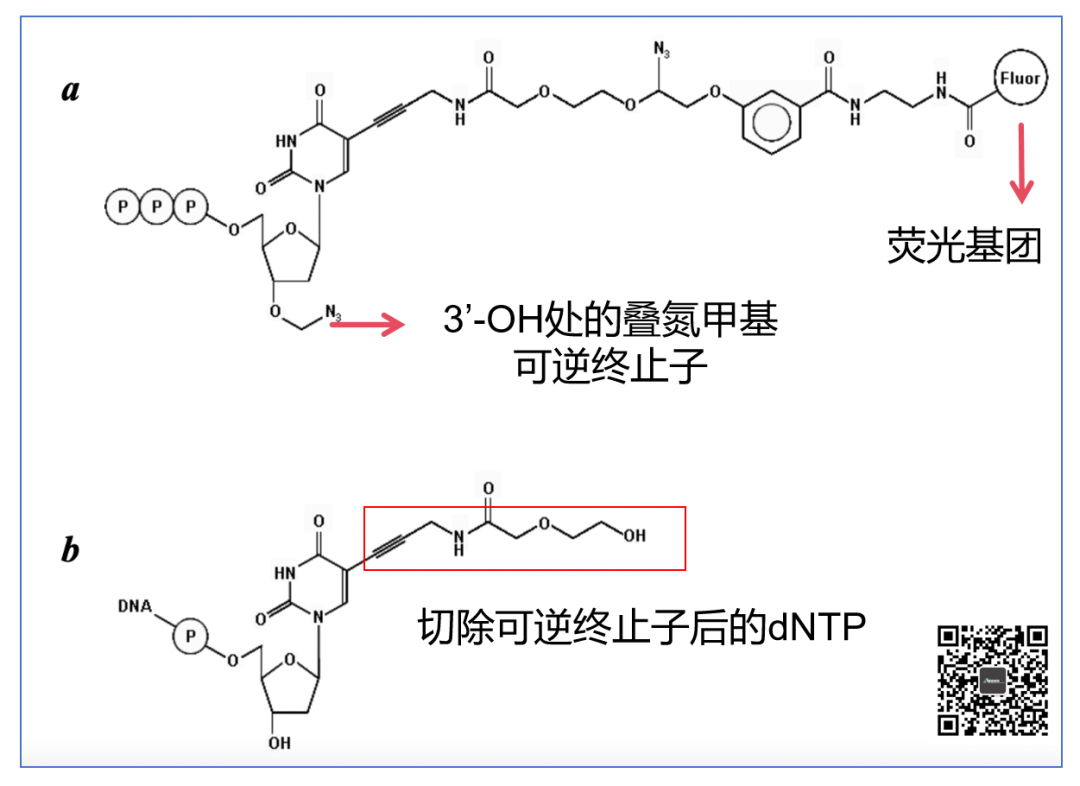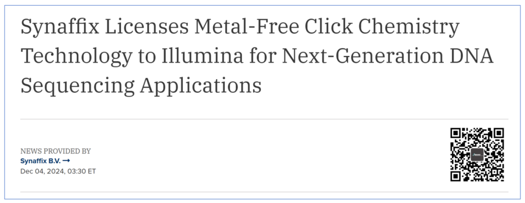 2024年12月4日,荷兰ADC技术公司Synaffix宣布与Illumina达成合作。 你看,这不呼应了标题ADC遇见NGS了吗? 还不信? 公告表示,Synaffix将自家专利的无金属点击化学技术授权给Illumina,而这个无金属点击化学技术正是该公司GlycoConnect定点偶联技术的基石。 Synaffix也是ADC领域的明星,与多家跨国药企有合作,跟中国的信达、美雅珂等均有合作。 点击化学大家都知道,我再复读机一下。 点击化学由Barry Sharpless在2000年前后提出,是一种能够迅速发生反应并避免生成副产物的简单可靠的化学反应形式。 不久之后,Morten Meldal 和 Barry Sharpless彼此独立发表了铜催化的叠氮化物-炔烃环加成反应。 2004年,Carolyn Bertozzi又将点击化学提升到了新的水平,发表无铜点击反应,并命名为应变促进炔叠氮化物环加成(strain-promoted alkyne-azide cycloaddition)。 2022年诺贝尔化学奖授予了美国化学家Carolyn R. Bertozzi、丹麦化学家Morten Meldal和美国化学家K. Barry Sharpless Synaffix针对抗体上的聚糖进行修饰,通过连续的酶促聚糖修剪和精确的叠氮化物标记,再通过无铜点击化学将有效载荷锚定在天冬酰胺-297的抗体聚糖上,形成ADC药物。 相信熟悉Illumina SBS测序的小伙伴已经要素警觉了。 叠氮基团正是Illumina 使用的可逆末端终止子的修饰,而切除修饰和荧光基团后,仍然会残留部分残基,被称之为“疤痕”。 这种疤痕的累积会影响生成链的DNA结构稳定性,降低聚合酶工作效率,从而导至测序错误和无法实现长读长。 那么,我们是不是可以大胆幻想一下Illumina和Synaffix的合作就是为了解决这个问题呢? 会不会是一种少“疤痕”或者无“疤痕”的测序技术呢? 我们可以设想下的实现原理可能是: 首先,加入含有叠氮基团终止子的dNTP; 第二步,通过点击化学引入荧光基团,这部分基团被可完全切除的连接子(linker)连接; 第三步,切除引入的荧光基团,暴露3’-OH等待下一轮反应。 完美,除了这是我们的想象似乎没有什么槽点。 这种方式比PacBio的SBB测序模式要省事的多,基本不会多增加很多测序时间开销。 这将成为PacBio SBB、华大智造CoolMPS之外第三种无“疤痕”的NGS测序技术。 当然,这是基于我们猜对的情况下,目前只是幻想... 最后,可别认为咱在点击化学上落后了啊。 华大因源早在2017年就申请了基于点击化学的专利,你敢想华大在技术上的积累得有多少... END