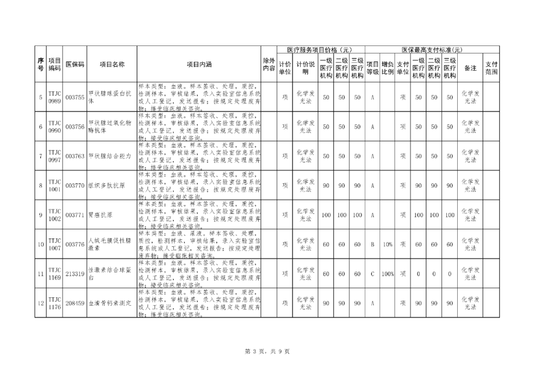 各区医保局、卫生健康委、人社局,各有关单位: 为进一步规范医疗服务项目管理,结合我市实际,经研究论证,现对红细胞膜蛋白电泳等项目价格和医保支付标准进行规范调整,有关事项通知如下: 一、规范调整红细胞膜蛋白电泳等项目价格和医保支付标准,具体内容见附件。 二、同步调整《天津市基本医疗保险、工伤保险和生育保险诊疗项目目录暨服务设施标准》,基本医疗保险和工伤保险支付标准按照调整后的规定执行。 三、各有关医疗机构应当严格按照规定向患者提供服务并收取费用,规范价格行为,及时做好信息系统更新维护和价格公示等相关工作。 四、各单位要落实责任,确保政策平稳实施,并密切关注政策执行情况,跟踪政策实施效果。 本通知自2024年12月20日执行。 此次调整将游离甲状腺素、游离三碘甲状腺原氨酸、甲状腺球蛋白、甲状腺结合球蛋白、甲状腺球蛋白抗体 、甲状腺过氧化物酶抗体、甲状腺结合能力、组织多肽抗原、胃癌抗原、人绒毛膜促性腺激素、性激 素结合球蛋白、血清骨钙素测定、总Ⅰ型前胶原氨基端延长肽(PINP)、促甲状腺素受体抗体测定、维生素族联合 检测、雄烯二酮测定共16项计价说明由“电化学发光法”规范为“化学发光法”。 随着安徽集采的甲功的开标在即,天津走在了前列,先统一了化学发光的方法学,再同步降价。且降幅有的达到了近42%!如游离甲状腺素由50元降为40元,三碘甲状腺原氨酸由60元降价到50元,甲状腺素由60元降价到35元,促甲状腺素由60元降价45元等。 天津作为此次28省联盟之一,终端甲功降费,进一步压缩了其市场容量,甲功出厂端4-5元/人份的价格,可能还得进一步压缩! 不可否认,集采也好,DRG/DIP也罢,其最终目的都是控制医保支出,集采是抓手,天津医保局此次直接先降甲功收费,终端最先难受,医疗机构肌自负盈亏的背景下,恐怕主任又得找渠道重新谈话控制耗占比了!结果最后苦的还是众多渠道和那96个厂家了! 天津价格调整20241203.pdf |