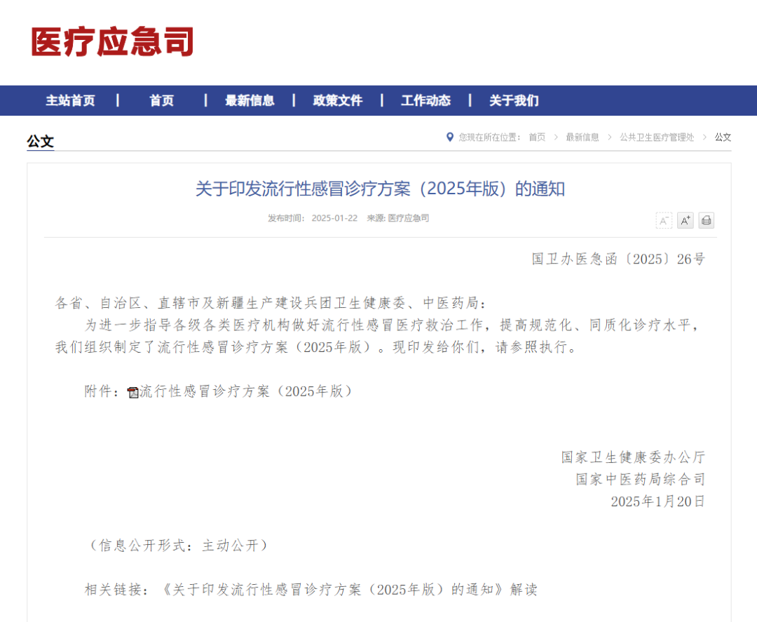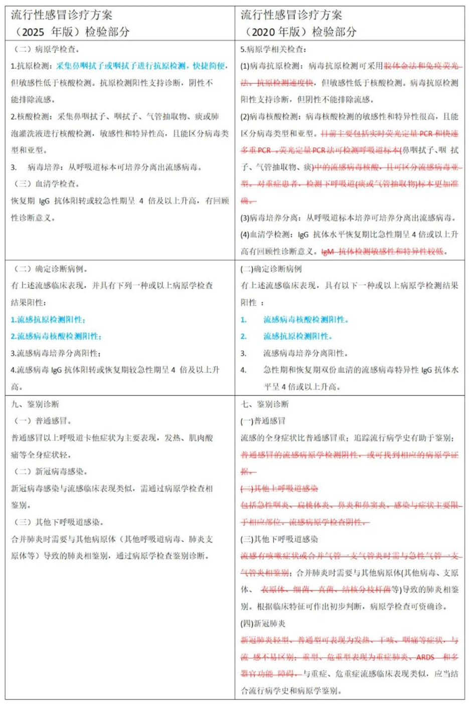 1月22日,国家卫健委发布,《流行性感冒诊疗方案(2025年版)》,其中关于检测部分有以下几点变动: (1)抗原检测:删除了方法学胶体金和免疫荧光法 (2)核酸检测:删除了方法学实时荧光定量PCR和快速多重PCR法 (3)血清学检查:删除了IgM抗体检测敏感性和特异性较低的论述 (4)确定诊断病例:调换了抗原检测和核酸检测的先后顺序 (5)鉴别诊断:删除了与普通感冒、其他上呼吸道感染、下呼吸道细菌、真菌的鉴别诊断,明确了流感与新冠的病原学鉴别诊断。 截图来源:国家卫生健康委员会 流行性感冒诊疗方案(2025年版) 本文内容来源自国家卫生健康委员会官方网站 |