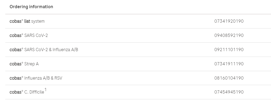 • 2023年9月,Roche的cobas SARS-CoV-2和流感AIB核酸测试获得EUA,可在cobas Liat设备上使用。