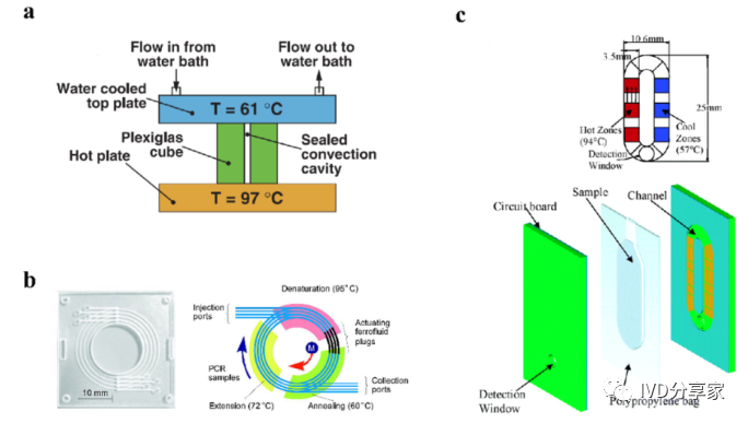 尽管典型的PCR反应过程简单明了,化学扩增效果明显,但对硬件条件的依赖仍然是PCR广泛使用的一个重要障碍。提高热循环率、最小化设备和使用更少的化学品需要进一步开发。传统的台式热循环仪仪器体积大,试剂消耗大,导至系统热容量增加,进而降低了温度转变速率和反应速率。这些缺陷可以通过PCR设备的小型化来解决。近几十年来,微流控PCR设备的发展有了很大的进步,改变了传统的核酸扩增PCR方法体积大、成本高、耗散大、易污染和降解等问题。热传导速度加快,提高了热循环的效率。