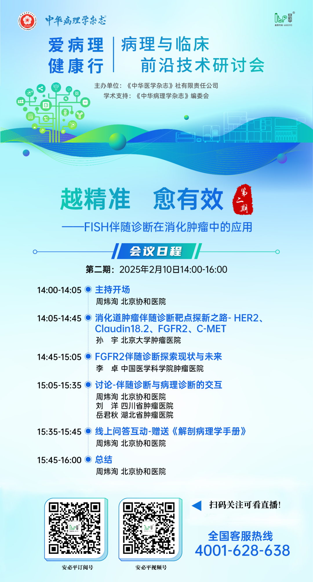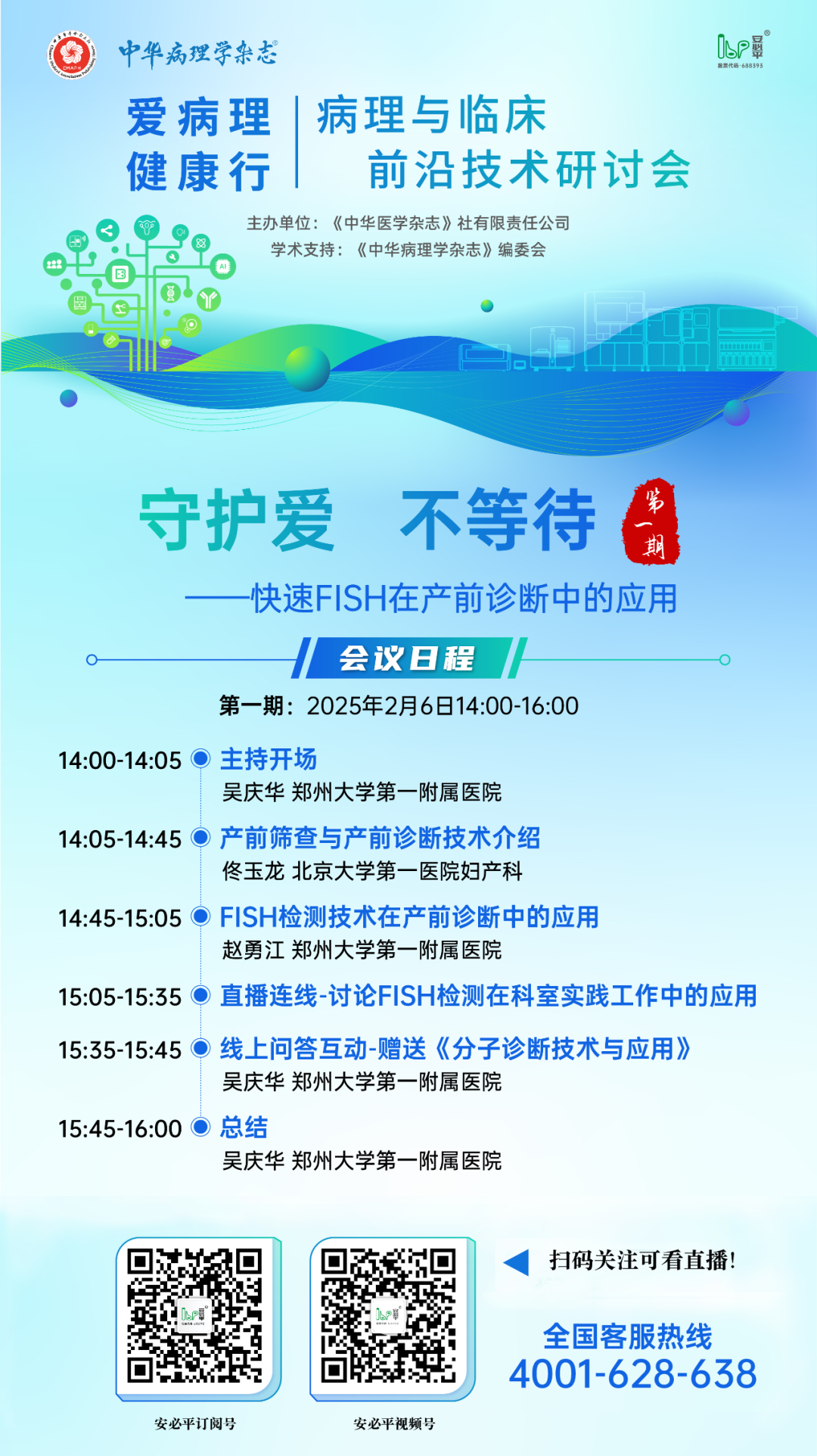 最近,大家都会习惯说 “节后再议”“回来规划”… 但,其实很多事情需提前列入日程中 下面推荐 未来一年学习计划不可少系列课程 第一期: 守护爱,不等待——快速FISH在产前诊断中的应用 第一期设定在2 月 6 日,以“产前诊断”为主题,邀请了多名国内遗传学专家,聚焦FISH 检测技术在产前诊断中的应用,开展对当下减少出生缺陷、降低家庭和社会医疗负担等话题。 产前诊断(Prenatal Diagnosis)作为提高出生人口素质的重要手段。产前诊断技术不断发展,逐步从传统的侵入性诊断向非侵入性精准诊断转变。FISH技术检测染色体数目、结构和基因的异常,对于许多常见的遗传性疾病、染色体异常等起到了关键作用,尤其在染色体非整倍体、基因突变、微缺失综合征等方面具有重要应用价值。 安必平产前诊断染色体数目检测试剂盒作为国内FISH检测平台唯一三类证产品,拥有快速检测的优势,快速出结果,缓解孕妇的焦虑,非侵入性的FISH检测有助于进一步降低风险,提升诊断的安全性和便捷性。 第二期: 越精准,愈有效——FISH伴随诊断在消化肿瘤应用 第二期设定在 2 月 10 日,以“伴随诊断”为主题,诚邀国内著名的消化病理专家,开展消化道肿瘤伴随诊断靶点探新之路,推动伴随诊断领域探索。 结直肠癌、胃癌、食管癌等是在我国恶性肿瘤中发病率居于高位的消化道肿瘤疾病。随着筛查诊断技术不断提升,消化道肿瘤靶向治疗方案持续创新。伴随诊断的发展中,病理诊断尤其是分子病理包含了蛋白、FISH、PCR以及NGS等众多技术平台这些年在消化道等肿瘤诊疗中发挥越来重要的作用。 本次系列会议由《中华医学杂志》社有限责任公司、《中华病理学杂志》编辑委员会,广州安必平医药科技股份有限公司携手筹办。安必平作为国内精准诊断领域的上市企业,拥有数字AI赋能的液基细胞学(LBC)、免疫组织化学(IHC)、荧光原位杂交(FISH)、聚合酶链式反应(PCR)四大技术平台,多年不断探索更多与药物绑定的靶点检测,同时持续跟进药企的靶点开发,与时俱进,为伴随诊断赋能,争取让检测技术更加精进,服务精准医疗,服务患者,让患者获得更多的生存希望。 本次系列会议结合安必平多个创新技术平台,携手各领域顶尖专家,打造精彩纷呈的多样化主题,更多研讨直播,将接踵而至,敬请期待! 为了不让大家错过直播时间,请点解链接预约! |