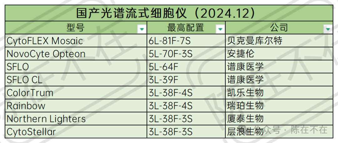 微球流式,在中国临床一般被称为流式荧光发光。这一IVD子领域,中国领先全球。2024年,新批110+二类流式注册证中,微球流式占到70%,细胞流式方面则主要是12张仪器证和优利特,赛雷纳和朴华科技的精子分析证。2024年,4起流式投融资,1起为微球流式企业——湖北新纵科。2024年,流式荧光方法学进入肿瘤标志物集采清单,从一个侧面说明市场的认可。中国62家IVD上市公司,唯一流式占主导的是透景生命,主营微球流式。仍在上市路上的诸多国内流式公司,两家起步于细胞因子的企业,销售收入占据流式国内前三位。一种自身免疫病会有多种自身抗体,一种自身抗体对应多种自身免疫病。自免被认为是最适合微球流式检测的项目。包括原有方法学制造商,以及多重检测公司,如:透景,胡曼智造,唯公,亚辉龙,携光,万子健等相继推出自身抗体大套餐,针对肝病,肌炎,不孕不育的组合。阿尔茨海默病早筛和诊断,因为国家政策对老年病和慢性病的关注,以及减缓进程,改善生活质量的新药推出,成为IVD产品开发的热点。继赛基五联检微球流式试剂盒之后,谱迪推出基于信号级联放大技术的四联检(包括GFAP)试剂盒。玛雅光年更推出据说是单分子检测的数字流式荧光试剂(包括p-tau217)。可以预期的是,包括微球流式的流式诊断技术因其多联检的特点,必然在疾病早筛,临床诊断,预后和复发检测等阶段发挥其独特的作用,成为IVD新时期的生力军。当然,增长也会遇到不可避免的挑战,如细胞因子,联检试剂盒玩家已达17家,除个别公司外,组合大同小异,入院价格在多个省市的医院已经大幅下调。火热的同时吸引了传统化学发光企业的加入,是否还需进入以及如何保持增长是摆在诸多流式企业面前共同的问题。多色分析与光谱流式 2024年,流式机器新品不断推出。 试剂厂家选择自研或者外部OEM合作,以期提供整体解决方案。 流式质谱,领军企业宸安生物桌面型产品宵晖Lunarion获得二类注册证,与星瀚Starion双星闪耀银河。 分光流式,贝克曼库尔特3L-13F出道,安捷伦先前推出3L-21F,4L-25F,5L-30F版本,市场先后新增层浪,中生医疗,优利特,迈瑞,指真,棱镜泰克,达科为,凯乐等三激光及以上新玩家。 荧光光谱流式,2024年贝克曼库尔特,安捷伦,安捷伦,凯乐加入,市场可见产品已达10家。 高参数流式细胞仪之荧光光谱流式