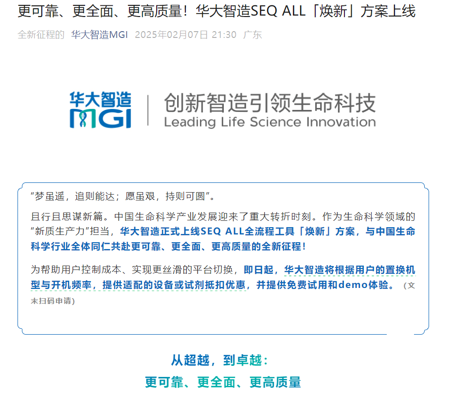 至此,华大智造成为全球测序领域第一也是唯一一个集齐“高通量测序+纳米孔测序+时空组学+细胞组学”四大热门领域的测序设备生产商,真正实现“全读长”测序产品的全周期闭环,能为客户提供“长+短”测序端到端服务。