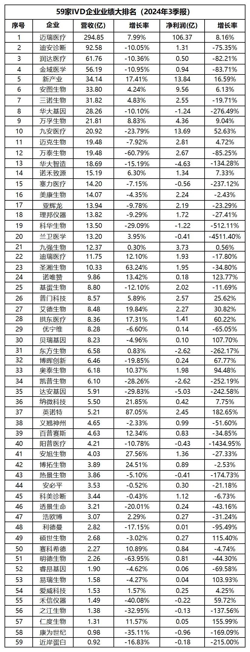 2025年2月27日,国内三家专注于体外诊断(IVD)领域的生物科技企业——奥泰生物(688606)、博拓生物(688767)、英诺特(688253)相继发布2024年度业绩快报。数据显示,凭借POCT(即时检验)及胶体金技术的广泛应用与高附加值特性,三家企业均实现营收与净利润双增长,其中核心财务指标增幅显著,凸显该细分领域的高利润率优势。 业绩亮点:净利润增幅领跑,POCT赛道成核心引擎 奥泰生物:2024年营业总收入8.70亿元,同比增长15.25%;归母净利润3.04亿元,同比大增68.18%。公司通过持续研发创新,每月推出POCT新产品,叠加自动化生产与成本控制,营业利润率提升至40.4%(上年同期28.1%)。 博拓生物:营收5.61亿元,同比增长26.80%;归母净利润1.77亿元,增幅65.74%。其POCT业务受益于国际市场拓展及新冠试剂订单预收款转化,营业利润率达36.0%(上年同期26.4%)。 英诺特:营收6.21亿元,同比增长29.98%;归母净利润2.46亿元,增幅41.24%。呼吸道检测产品需求旺盛,胶体金技术支撑的高毛利产品占比提升,推动净利润率达39.5%(上年同期36.4%)。 高利润率背后:技术创新与市场需求共振 1. POCT与胶体金技术优势显著 POCT凭借快速、便捷、低成本的特点,在基层医疗和居家检测场景渗透率持续提升。胶体金作为POCT主流技术之一,因稳定性高、无需复杂设备,成为传染病(如流感、新冠)及慢性病检测的首选方案。三家企业中,奥泰生物通过“每月新品迭代”巩固技术壁垒;英诺特则依托胶体金试剂卡在呼吸道检测领域的领先市占率,实现毛利率超70%。 2. 政策与市场双轮驱动 国家分级诊疗政策推动基层医疗市场扩容,叠加呼吸道疾病早筛需求增长,POCT产品需求激增。英诺特在年报中提及,2024年基层市场收入占比提升至35%;博拓生物则通过海外认证布局,国际业务收入同比增长40%。 3. 降本增效强化盈利空间 自动化生产与规模化效应成为利润增长关键。奥泰生物通过“控本增效”将管理费用率压缩至8.5%(上年10.2%);博拓生物因产能优化,单位生产成本下降12%,进一步释放利润空间。 行业展望:全球化与多元化成新增长点 尽管第四季度呼吸道病原体流行变化对英诺特短期增速造成扰动,但企业普遍加码长期战略:奥泰生物计划2025年推出微流控等高端POCT产品;博拓生物将扩大胶体金产线至宠物诊断领域;英诺特则通过数字化升级与海外临床投入,瞄准欧美市场准入。 生化免疫企业—应对集采很匆忙 分子诊断企业—还在摆脱新冠的长尾影响 根据IVD资讯此前统计的2024的三季报来看,有34家营收负增长,37家净利润负增长;有14家企业净利润为负;仅14家IVD企业业绩有2位数增长。可见2024年是IVD行业最为艰难的一年。 生化免疫企业忙着应付集采的降价冲击,连罗氏诊断这种IVD巨头都因为集采裁员了。 分子诊断企业,积极拓展业务的净利润开始下降了,还在摆脱新冠存量设备折旧问题的企业,净利润还是负的。 而主营胶体金、POCT产品的企业反而在营收增长和净利润方面取得不错的增长。 (IVD资讯制图,以营收排序) |