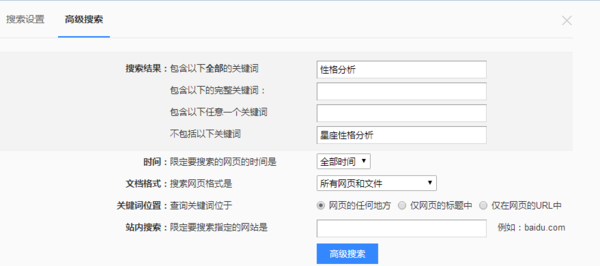 打开高级搜索,有的搜索引擎需要用特定符号表示。