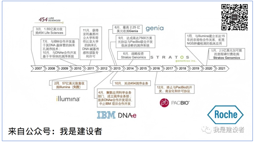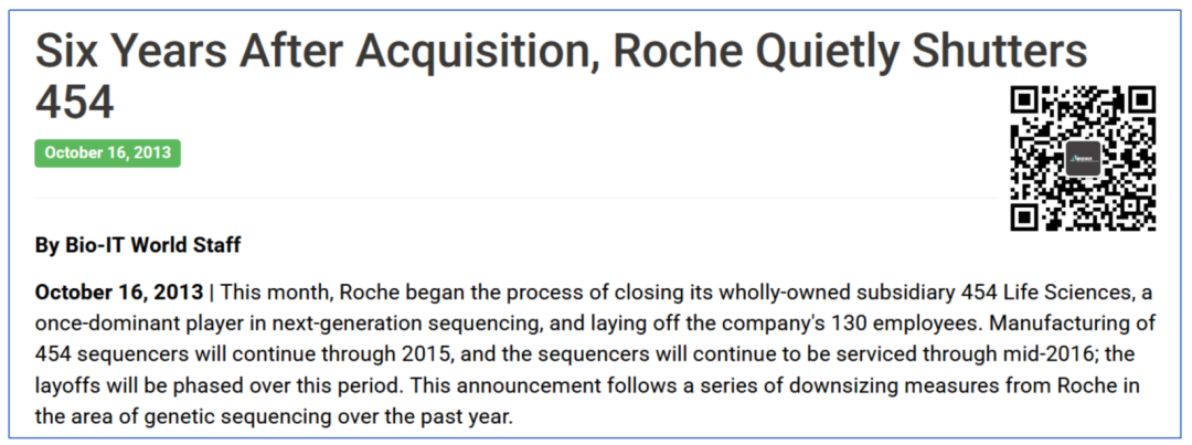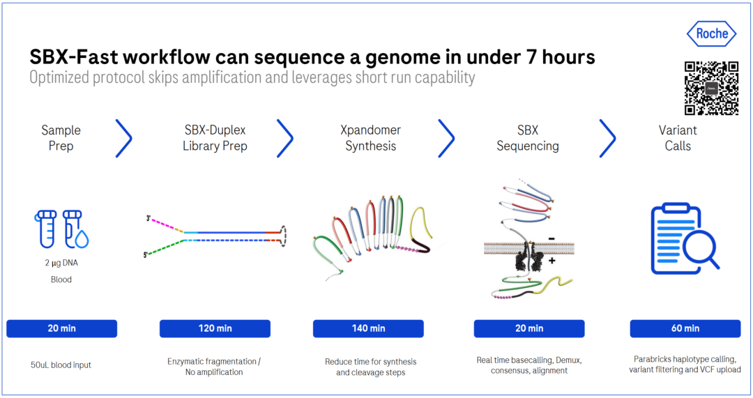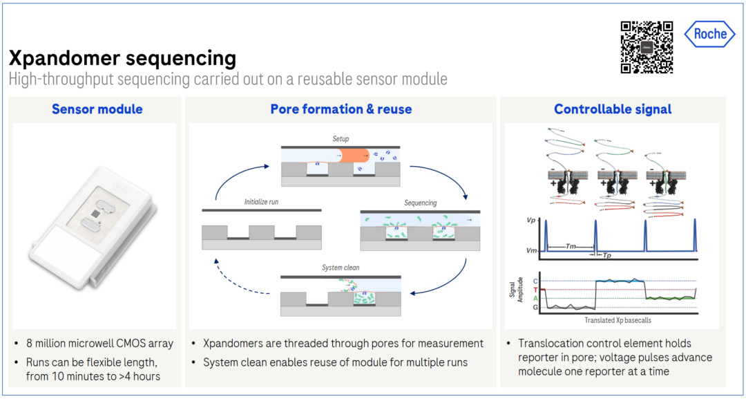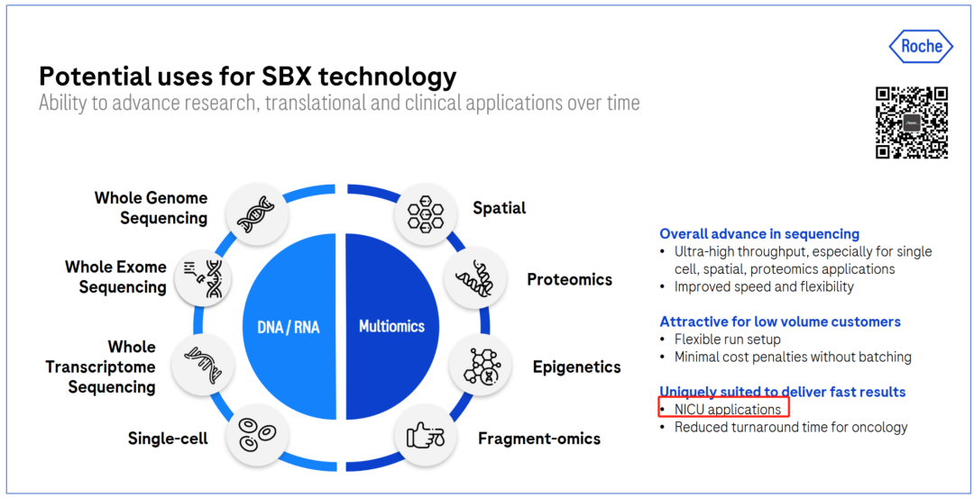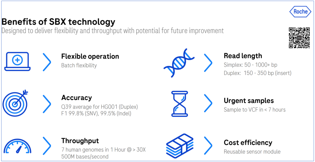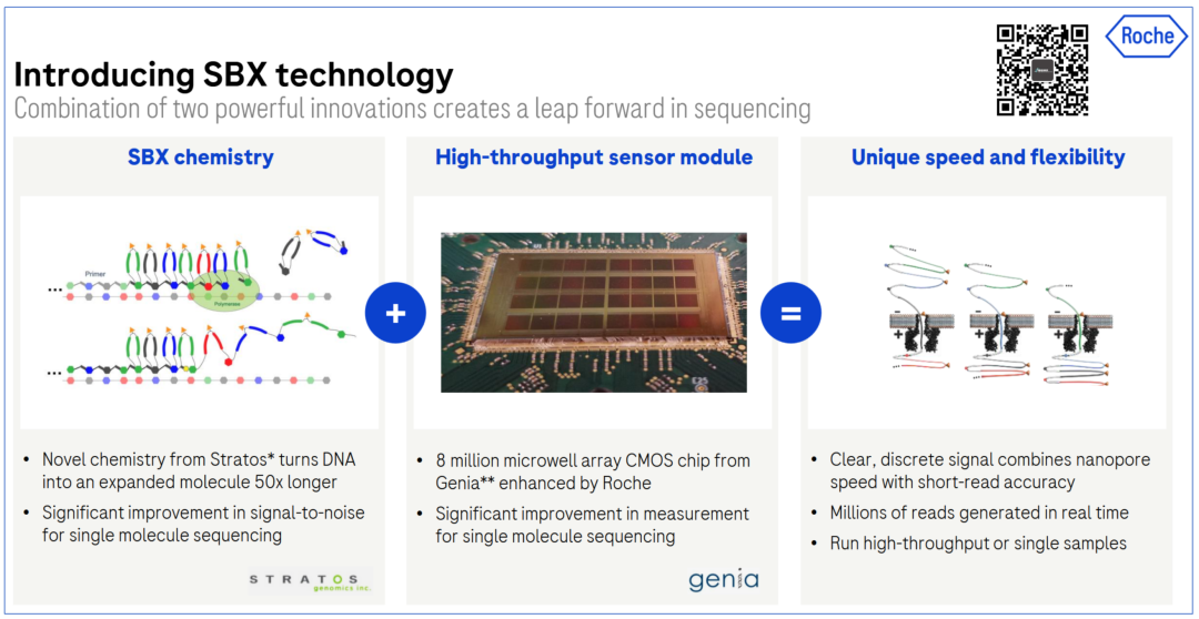 先放重点: 第一,技术原理:Roche罗氏SBX测序技术是结合了人工合成dNTP(X-NTPs)和纳米孔测序技术的一种单分子纳米孔测序技术; 第二,读长:SBX-Duplex测序读长约200-300bp,SBX-Simplex测序读长50-1kb; 第三,精度:Duplex测序模式下可以达到Q39,接近Q40. 第四,通量:8M CMOS芯片,可!复!用! 第五,速度:1小时生成5.3B duplex reads,约7个30X人全基因组数据。 看下来,Roche罗氏这是要掀了NGS的桌子啊! 这一次,Roche真的成了NGS杀手。 看完本文您将厘清几个问题:罗氏与NGS的“杀手孽缘”、SBX的技术起源、SBX的技术测点和未来的推演。 #01 杀手往事 Roche罗氏在测序行业可谓“罄竹难书”。 2007年,Roche以1.549亿美元收购了454 Life Sciences,进入测序仪行业。 对,就是大家耳熟能详的焦磷酸测序代表。 2000年,业界大神Jonathan Rothberg、Ion Torrent创始人/技术发明人、Quantum-Si创始人/技术发明人..创立了454 Life Sciences。 然后,2013年宣布:对不住,黄了。 可能是钱太多,2007年他还收购了一家相关企业NimbleGen,对价2.725亿美元。 这家既能做基因芯片,也能用芯片做固相的靶向捕获。 算是NGS行业的元老之一,生产的外显子捕获试剂国内还卖过老长时间。 然而,撑的也就是比454久了一点。 2018年,Roche再次宣布:NimbleGen黄了。 事实上,这货在测序仪领域“作的妖”远比这个要多。 我们引用建设兄的一张图,大家看了就知道了。 这里有两个关键的公司:Genia和Stratos。 2014年,Roche以1.25亿美元现金收购纳米孔测序初创企业Genia Technologies,获得CMOS纳米孔芯片。 2020年,Roche收购纳米孔测序仪初创企业Stratos Genomics,获得SBX技术。 左卧龙,右凤雏,大事可定也。 然而,新测序仪这个事从收购Genia算起,一磨(叽)就是11年。 #02 剑锋利否? 正如大家所见,Roche的SBX测序技术是一个Stratos+Genia的混合体。 我们先从生化层面来说,SBX的基础是Xpandomer(X-NTPs)。 Xpandomer即Expandable nucleotide triphosphates,可延伸核苷酸三磷酸盐。 在测序前,通过使用X-NTPs合成测序文库,取代原来的dNTP。 生成的人工可读取碱基大小是模板的50倍,这样既保留了原有的序列信息,又可以使后续的纳米孔测序难度大大降低。 测序纳米孔芯片采用Complementary Metal Oxide Semiconductor(互补金属氧化物半导体),具有800万个纳米孔(8M)。 读取时间从10分钟到4小时以上,更为关键的是通过清洗,测序纳米孔芯片可以多次使用! (虽然多少次没说) 可以预见,在测序芯片上的价格可以大幅下降。 而,SBX测序技术由于使用了X-NTPs使得纳米孔过孔时间延长,而X-NTPs的大小刚好可以与纳米孔大小适配,且人工合成的X-NTPs完全没有所谓GC含量的问题。 因此,测序精度得以大幅度提高。 按照罗氏的总结,测序通量1小时完成7个人基因组30X覆盖的测序,500M bases/秒。 测序准确度达到Q39,完爆友商。 考虑到8M芯片大小,也就是60 bp/s左右的速度? 有Simplex和Duplex两种文库结构(测序方式),两者测序长度略有不同。 Simplex下读长50-1000bp+,Duplex下读长200-300bp。 其中,Duplex测序模式下,测序精度达到Q39 如果测序原理没看爽的,可以看看下面的视频。 首先,SBX的高速、高精度测序确实很吸引人。 根据Roche公开的案例,7小时就能完成从样本提取到完成变异检测。 有了这货,GeneDx之前推的48小时“Ultrarapid WGS”就可以扔了。 Roche还非常谦虚,人家只叫“SBX-Fast”... 你们美国企业就知道咋咋呼呼...看看人家... 因此,我们认为,凭借这两点Roche只要价格不是很夸张,足以砍下不错的市场份额。 第二,SBX占绝对优势的应用场景并不多; 相较于纯纳米孔测序,SBX需要多一步Xpandomer合成的步骤,约140分钟。 且,纳米孔测序动不动就Mb级的读长也是目前SBX望尘莫及的。 如果仔细去想,需要7小时出报告的场景是什么的话,我能想到的就是感染了。 而现在,用NGS华大智造的DNBSEQ-G99/E25似乎也能胜任。 新出的DNBSEQ-E25 Flash能把SE50的测序时间压缩到2小时,整个报告时间7小时。 除非,是要做数据量更高的应用。 比如,NICU的新生儿全基因组超快测序,在这个领域SBX确实无可匹敌(目前)。 只是,这种应用场景还是少了点。 肿瘤啥的,你48小时出结果跟8小时出结果,其实根本没差。 还是得看价格。 第三,原生甲基化检测可能是短板。 由于使用了人工碱基,原生的甲基化检测几乎是不可能了。 除非,Roche能够合成专门针对甲基化的X-NTPs。 目前还没看到具体信息,因此不确认。 #04 最后 其实SBX还有个缺陷,就是在合成链的时候可能会有错误,这是必然的。 而生成链能够达到99.3%的原始准确度,即Q20+。 还是要靠Duplex测序才能把准确度提升上来,再加上本身合成可能会有错误。 终究不是最完美(话说哪个技术也不是万美无缺的)。 Roche SBX测序仪(还没名字)确实是一款强大的测序工具,无论在速度上还是精度上都达到了极高的水平。 在未来,无论是单细胞还是外显子,都很有可能有其一席之地。 从官方给出的信息来看,也认同我们对NICU是非常好的应用场景这一看法。 不过,最终的竞争看的是综合实力。 如果,我是说如果,Roche掏出来的是99美元/G的成本,我建议大家都洗洗睡吧。 毕竟,Roche不差钱,但是Roche的客户可能差钱... 而,如果Roche掏出来的是0.9美元/G,我建议其他厂家直接洗干净脖子... 哦,先别急,上市时间还没定。 |