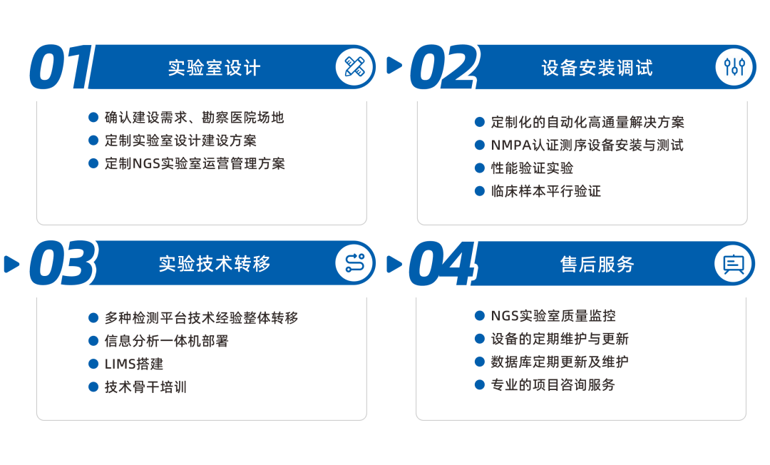 优迅医学NGS基因检测解决方案涵盖“仪器+试剂+分析”全流程体系,各环节高效协同、质量可控,提高了检测结果的准确性和稳定性;灵活适配自动化方案,降低了操作难度和检测成本,可以为用户提供全方位的一体化整合服务。