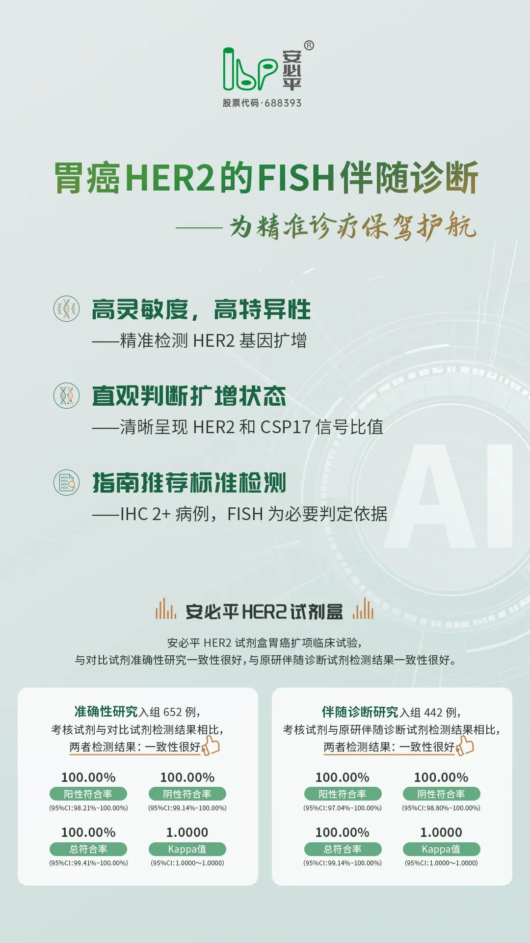 安必平(股票代码:688393)自主研发的乳腺癌HER2基因检测获得三类证后,胃癌HER2基因检测伴随诊断试剂盒成功获得三类证!成为国内拥有罕见一靶双证的企业。