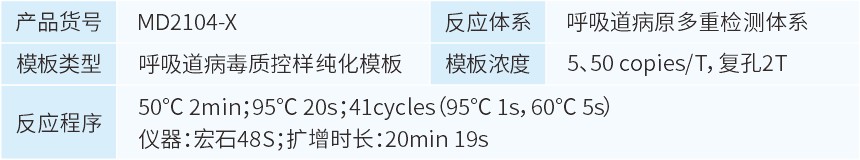 冬春之交,多地流感疫情进入高发期,医疗机构的检验工作量大幅上升。 如何才能提高复杂样本的兼容性,提高检验效率,缩短检验时间? 宝锐生物为您提供最佳的解决方案。 宝锐生物全新推出SensiDirect RT Premix-UNG (Probe qRT-PCR),以“样本直扩、全预混免配、20分钟快检”三箭齐发,助力检测流程全面提速,让复杂变简单,让等待变高效。 01 全预混·超长稳定 ✦ • 预混引物、探针、酶系于一体,2-8℃保存7天性能无衰减,一周配液一次,配一次用7天。 ✦ • 开盖即用,减少人为误差,紧急检测随时启动! ✦ 02 极速扩增·20分钟“RNA快检” ✦ • 搭载超快热启动酶,RT-qPCR扩增最快20分钟完成。 ✦ • 较常规方案提速3倍,单日检测通量翻倍提升! ✦ 03 样本直扩·兼容多元 ✦ • 咽拭子、唾液、鼻拭子等直接上样扩增,无需核酸提取。 ✦ • 抗干扰配方破解复杂样本抑制难题,检出率媲美传统提取法! ✦ 04 精准灵敏·流感特攻 ✦ • 针对呼吸道多重病原优化设计。 ✦ • 低至10 copies/μL高敏检出,交叉反应零容忍! ✦ 稳定性测试✦ 保存稳定性 实验条件: 测试方法:将buffer、酶以及引物探针混合配制成工作液,置于2-8℃保存7天。以同一体系的即时配制工作液作为对照,进行对比测试。 A管 测试结果: B管 测试结果: 结论:MD2104-X含引物探针状态下,2-8℃ 7天可保持稳定,后续实验中仅需加入模板即可实现高效扩增,试剂使用更加方便。 稳定性测试✦ 冻融稳定性 实验条件: 测试方法:将buffer、酶以及引物探针混合配制成工作液,进行冻融6次处理。以同一体系的即时配制工作液作为对照,进行对比测试。 结论:MD2104-X含引物探针状态下,冻融6次可保持稳定。 快速扩增测试✦ 实验条件: A管 测试结果: 图1 RNA普通程序下扩增性能测试结果 图2 RNA快速程序下扩增性能测试结果 B管 测试结果: 图3 RNA普通程序下扩增性能测试结果 图4 RNA快速程序下扩增性能测试结果 C管 测试结果: 图5 RNA常规程序下扩增性能测试结果 图6 RNA快速程序下扩增性能测试结果 结论:MD2104-X体系扩增性能在快速扩增程序与常规扩增程序相比,Ct值差异小于1,表明该体系适用于快速PCR扩增仪或快速程序进行快速扩增。 抗抑制性测试✦ 实验条件: 测试方法:将HRV和HBoV病毒质控样品分别⽤TE Buffer、核酸释放剂和投入口腔拭子的核酸释放剂稀释⾄待测浓度,然后直接加样,每30μL加样量为10μL。 结论:MD2104-X对释放剂和口腔拭子背景样本的扩增可与TE Buffer稀释的纯模板扩增效果基本相当,对释放剂和口腔拭子的抗抑制性较强。 01 急诊/床旁检测(POCT):快速报告,为检测结果争分夺秒。 02 大规模人群筛查:高效率,轻松应对突发公卫事件。 03 基层医疗机构:无需昂贵提取设备,操作门槛大幅降低。 04 科研与动物疫病检测:兼容复杂样本,适配多种实验设计。 产品链接✦ “ ” 产品咨询 |