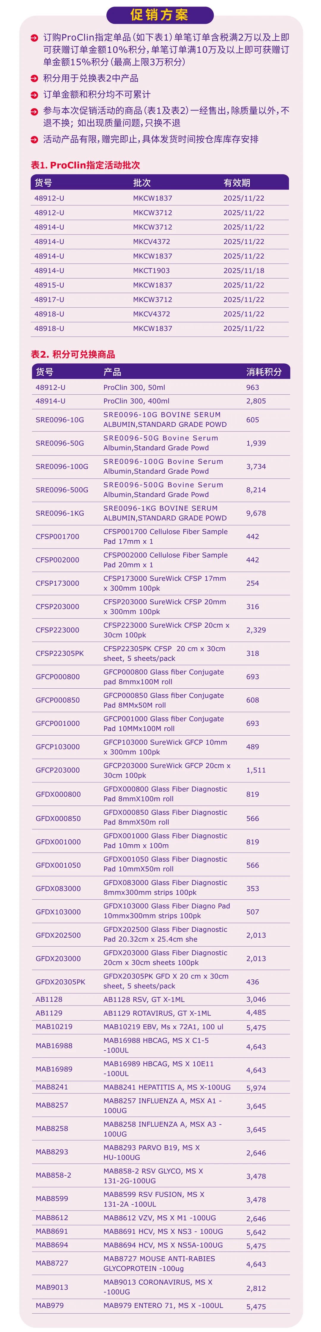 微生物是造成生物试剂污染的主要来源之一。如何预防微生物污染,保证检测试剂的精确度?如何保证产品在保质期内的品质?防腐剂为我们提供了有效的解决方案,它是一类能够杀灭或抑制微生物生长的化学物质,在液体试剂中发挥着重要的防腐作用。 叠氮化钠 目前最高频使用的生物试剂防腐剂,属于微生物抑制剂。叠氮化钠作为粉末,在酸性溶液中会释放有害的气体。虽无可燃性,但有爆炸性。在高于其熔点的温度下或剧烈震动时可分解爆炸;可以与金属、酸和氯化溶剂形成叠氮化物,有爆炸危险。由于剧毒、易爆的特点,被归入《危险化学品目录》,其储存、使用等均需符合安全管理制度。 如果您还在为这些问题烦恼, 是时候,该升级您的防腐剂啦! ProClin™的主要活性组份为两种异噻唑啉酮:2-甲基-4-异噻唑啉-3-酮(MIT)和5-氯-2-甲基-4-异噻唑啉-3-酮(CMIT)。在与微生物接触后的数分钟内,活性组份就能渗透过细胞壁从而抑制Krebs循环中某些特定酶的活性:丙酮酸脱氢酶、α-酮戊二酸脱氢酶、琥珀酸脱氢酶和NADH脱氢酶 (如右图红色箭头所示)。微生物的生长、大分子合成及呼吸链反应被有效的抑制,从而实现有效抑菌和杀菌的能力。 由独立实验室进行的微生物调整实验表明,与传统的防腐剂硫柳汞功效相当,优于叠氮化钠。 点击查看高清图片 ProClin™与生物实验主要酶及诱导剂兼容,不影响抗体结合。同时,默克提供4款ProClin™产品,满足多种实验需求。 点击查看高清图片 三月惊喜福利 |