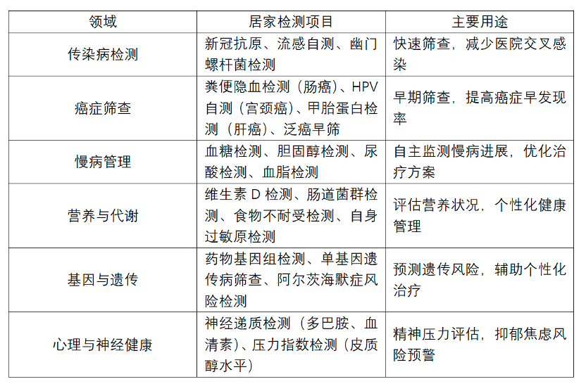 中国居家检测市场正处于蓬勃发展的起步阶段,政策利好、技术进步和消费需求交织,孕育出无限机遇。基层医疗机构是该过程中的关键一环,也是重要受益者。通过前瞻性的战略布局和扎实的落地执行,基层医疗完全可以在居家检测热潮中找到属于自己的定位和价值。既能服务社区百姓健康,又能拓展自身业务疆界。 来源:诊锁界 作者:弧矢 编辑:弧矢 封面来源:pixabay “有了家用幽门螺杆菌检测盒,胃痛是不是不用去医院了?”“我的智能手表提示心律不齐,要不要立刻就医?”越来越多的患者正依赖居家检测来管理自己的健康。居家检测不再局限于血糖、验孕等传统项目,而是迅速扩展到癌症筛查、慢病管理、基因检测、心理健康等细分领域,市场规模也不断扩大。据智研咨询数据,2022年我国体外诊断(IVD)市场规模达1,395亿元,2030年预计将突破4,000亿元,居家检测正成为医疗健康领域的千亿级蓝海。 然而,居家检测的兴起并不意味着它是高效无误的工具。它能否真正融入医疗体系,成为分级诊疗的一部分,还是会因检测结果解读不当、患者焦虑增加而带来新的就医困扰?对于基层医疗机构而言,关键在于如何将这一趋势转化为实际价值,而不是被动接受检测方式的变化。 检测手段的下沉让越来越多患者开始在家进行健康筛查和慢病管理,健康管理前置的趋势愈发明显,这也为基层医疗机构带来了新的增长空间。检测的便捷性提升了患者的健康意识,让早筛早诊的需求变得更加主动,而这正是基层医疗可以深度介入的领域。无论是基于居家检测优化慢病随访,还是依托互联网医疗和体检中心打造“检测—诊疗—健康管理”闭环,基层医疗都可以借此拓展服务边界,提升患者粘性。 如何让居家检测真正融入基层医疗的业务体系,让早筛早诊需求与线下诊疗形成互补,而非割裂,这正是基层医疗机构需要关注的方向。 (1)政策监管逐步完善。早些年监管部门对居家检测持审慎态度,2020年之前相关产品获批较少。但近两年随着需求增长,针对居家检测产品的注册审批与使用规范逐渐健全。2021年3月国家药品监管局起草的《体外诊断试剂注册管理办法》,明确要求:“由消费者个人自行使用的体外诊断试剂,在临床评价时,应当包含无医学背景消费者对说明书的认知能力评价”。这意味着监管层已关注到居家自测的特殊性,要求产品设计充分考虑普通人能否正确使用。2024年年底,中国检验检测学会还发布了国内首个《居家医学检验外送服务规范》,明确了自采送检和上门采样送检两种服务模式。政策和行业标准的出台,为居家检测合法合规发展保驾护航。 (2)技术进步降低门槛。诊断技术的革新大大拓宽了居家检测应用场景,也逐步把过去复杂的检测“搬回家”。多联检试剂的研发使一次采样可检测多种指标,如呼吸道病毒/细菌12联检产品将PCR检测集成于小型试剂盒中,实现家中取样、数小时内出报告。即时检测(POCT)设备小型化趋势明显,从掌上血糖仪到家用PCR机不断推陈出新。虽然POCT准确性目前相对实验室检测仍有提升空间,但其便携快速的优势已充分显现。就连曾经高度依赖大型设备的肾病、心脏病检测,也在Roche等跨国巨头的布局下显现出家用化苗头。 (3)居民自检需求觉醒。“每个人都是自己健康第一责任人”的理念深入人心。国民对定期体检、慢病监测的重视程度前所未有,疫情更让大众明白早发现早干预的重要性。使用抗原检测的经历也让大众认识到体外诊断并非高不可攀,在家用一根棉签加试纸条就能实现。而且早已普及多年的家用血压计、血糖仪、体温计,本身就是居家健康监测的一环。这些都在潜移默化中培养了消费者自主检测、主动健康管理的习惯。 (4)医疗供需矛盾催化。居家检测的兴起也与医疗资源紧张的现实背景密切相关。在传染病高发季节,三级医院动辄人满为患,患者排队做个检测既折腾又有交叉感染风险。2023年冬季,全国多地流感、支原体等呼吸道疾病叠加流行,许多儿科医院急诊爆满,一天接诊数百患者。互联网平台敏锐捕捉到“就地检测、避免跑医院”的需求,迅速推出居家快检服务,让患者半小时拿到试剂盒,在家采样,3小时查清病原体。这样患者就不必挤进医院检验科,在家就能明确诊断并线上问诊拿药。事实证明,这种模式有效分流了大量轻症检测需求,缓解了医院的压力。未来预计会有更多常见传染病筛查、慢病复查等检验项目。居民可以绕开医院实现居家自检,这将节省宝贵的医疗资源,提升诊疗效率,也让患者少跑医院、少花时间。 居家检测正成为分级诊疗体系的重要补充力量,把基础性、预防性的检测下沉到家庭场景,让医院腾出更多精力去处理更复杂的诊疗需求。 国内主要布局企业 (1) 下游:互联网医疗平台 京东健康构建了“线上问诊+居家检验+送药到家”的闭环服务。患者在京东互联网医院问诊时,医生可在线开具电子检验单,系统随即派遣附近护士上门采血采样并送检,平均约3小时后检验结果反馈给医生用于诊疗。通过这种“医+检+药”一体化模式,京东健康将本来需要线下面诊的检查环节搬到了线上,大幅提高了在线诊疗的准确性和可信度。据健闻咨询,京东健康已将居家快检服务拓展至15个核心城市,上线项目扩展到160多项常规检测,几乎覆盖门诊高频检查项,每日服务订单量达数千单。 美团依托美团买药
