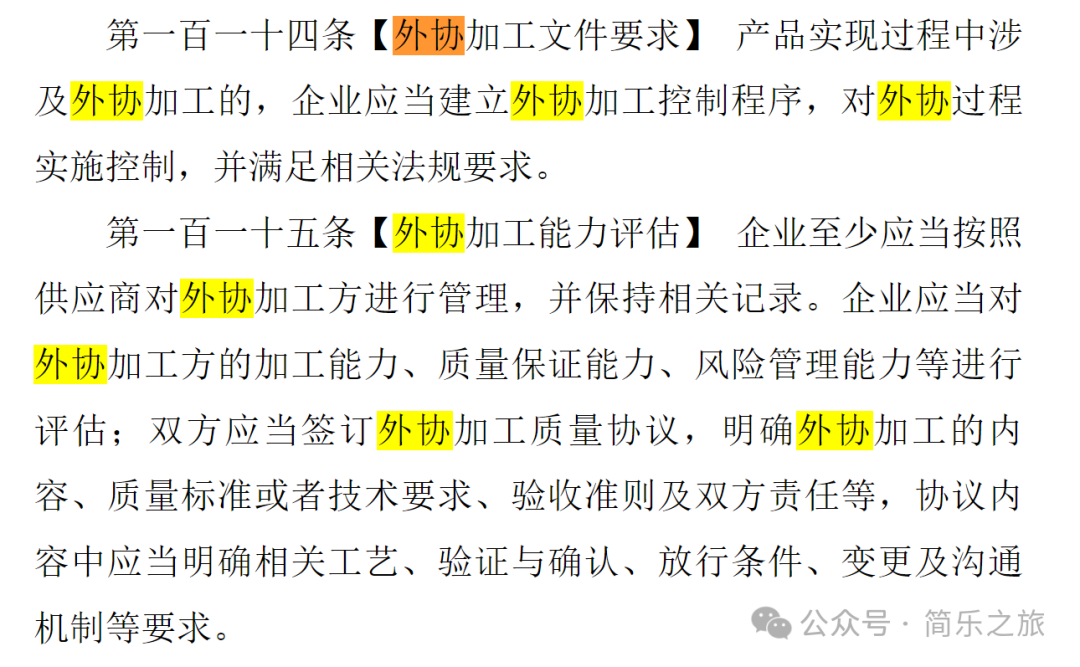 你好,我是圆乐,自由之路同行者,专注职场与个人提升。今天,在石头老师和圆乐的两个群里,大家都在讨论一些敏感的问题:2、关键工序和特殊工序让其他公司生产,算委托生产还是外协加工?委托生产:指医疗器械注册人、备案人将医疗器械成品全部工序委托给具有相应条件的企业进行生产的情形。外协加工:医疗器械生产企业由于生产能力、设备或者技术上的不足,将部分工序委托给其他企业进行生产的情形。结论:如果按照新的规范,那么把部分工序委托给其他公司做,显然算是外协加工。2、根据新的GMP条款,外协加工说的是“部分工序”没有说关键工序不能委托,因此我们可以认为关键工序是可以外协加工的。不过有朋友提醒圆乐,PCR试剂在湖南和广东那边,关键工序委托其他公司算委托生产而不是外协加工。不知道其他地区现行的做法是怎么样的,毕竟新的GMP文件尚未正式下发,也请大家留言交流一下。3、《医疗器械委托生产质量协议编制指南》说外协加工按照采购管理:“委托生产是指最终产品的委托生产,不包括最终产品部分工序的外协加工。部分工序的外协加工,建议按照采购来进行管理,对于采购及供应商的管理参照《医疗器械生产企业供应商审核指南》。如经双方协定,也可参照本质量协议的指南进行制定。”4、讨论过程中,有朋友问:大包装试剂是否可以按外协进行管理? 圆乐回答:“这是一个很好的问题,因为敏感,所以大家都避而不谈!”既然大家都避而不谈,那么我们也识趣地不展开讨论了。如果大包装公司被列入了生产厂家的供应商中,并按照规定来进行管理,那么大包装试剂业务应该是没有问题的。只不过外协加工的供应商管理比原料供应商的管理要求更多。详见新GMP文件的第114和115条,比如建立外协加工控制程序,并要求进行加工能力评估。当然原来是自产的后来委外了,应该需要进行注册变更。暂且不提新GMP的要求,以前的《供应商审核指南》明确规定以下四种情况必须现场审核:所以,外协加工方的现场审核不是最好做,而是必须进行现场审核。时代在变化,以前只能自己建厂生产,后来允许委托生产,即全工序委托,从可见的未来,政策将进一步放开允许各工序进行分拆外协加工。说心里话,对于初创企业或者规模小的企业,建厂房的投入产出比不好,产生了大量的浪费。甚至建完厂以后几年不用的,有个老板说房租都比建厂的费用高了。不过,上面的监管机构也越来越专业,并且越来越务实,这对企业及行业来说是好事。尤其是对那些小微企业,通过委托生产或者外协,能降低资金占用,将更多资金用于研发及市场推广;对大企业来说,通过OEM试剂能够对产品线进行快速补充,提高公司整体的产品质量及产品线的齐全程度。试想,如果一个公司几百个产品,每一个都要自己研发,做到质量领先是不现实的,即便真的这样去做,那也是对社会资源的巨大浪费。就好比当下的中美贸易战一样,都自己生产,本来已经突破的技术,只要通过交易便可大规模使用,降低研发及生产成本。可是贸易战让全球的供应链协作大量减少,大家各干一摊,不利于资源的高效利用。最好对自己产品升级换代的办法就是拥有自己有的产品,如果市场上有性价比高的,那么可以通过注册变更的方式,快速换上质量好,价格更低的大包装试剂。而生产企业通过规范化管理控制好产品质量,确保医疗器械产品安全有效,那么这种协作也是推动行业更高效、良性发展的方式。我们也共同期待更多,更务实,更专业的政策,帮IVD行业度过行业转型的阵痛期。