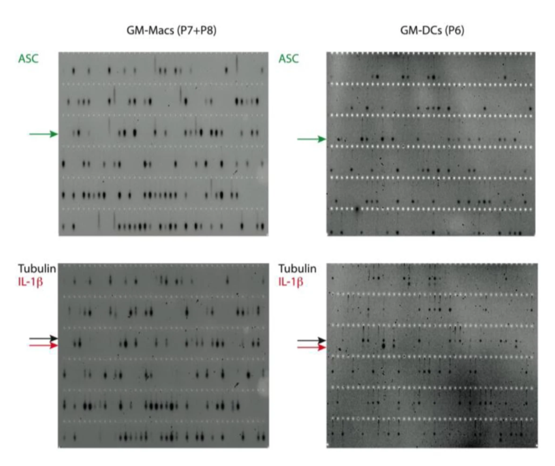 图8:scWestern检测GM-Macs和GM-DCs 细胞中ASC、IL-1β和Tubulin蛋白表达。
