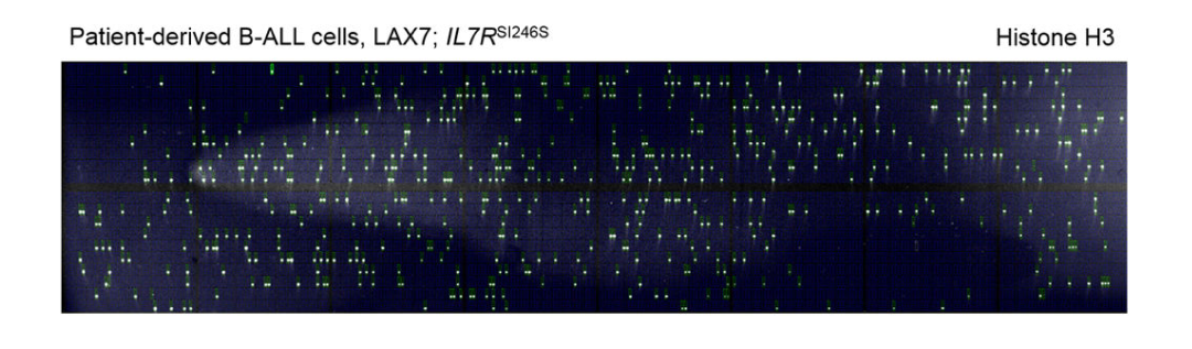 图6: scWestern芯片。检测Histon H3在单个细胞中的表达,每个亮点代表一个细胞中Histone H3蛋白的荧光信号