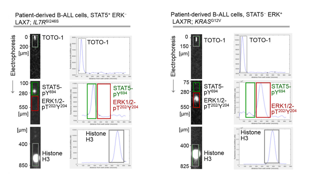 scWestern磷酸化检测:对6例B-ALL患者单细胞分析STAT5-pY694/ERK-pT202-Y204(图6,图7)