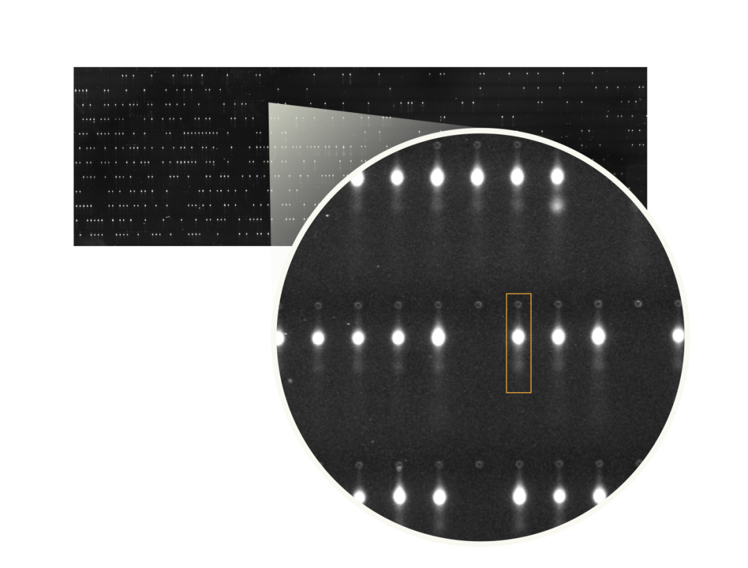 图9:scWestern 检测Hela细胞内参蛋白 Gapdh。芯片扫描及局部放大图像(裂解时间20s;电泳时间45s)