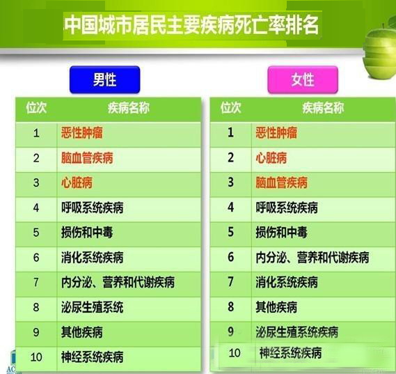 全世界痴呆病人已达2400多万,平均每7秒增加一个,中国老年痴呆患者约占全世界病例总数的四分之一,平均每年增加30万的新发老年痴呆病例。 骨质疏松症已跃居常见病、多发病的第七位,60岁以上的人群患病率为56%,女性发病率为60~70%。其中骨折率发生率接近三分之一,每年医疗费用按最保守的估计需要人民币150亿。 第二座健康大山——癌症年轻化 根据统计数据:2005年~2015年间中国因疾病而导至生产力丧失将累计给中国造成5500亿美元的经济损失,其中中国一年用于心脑血管疾病的治疗经费达到3000亿人民币元人民币;中国的肝炎的直接经济损失达3600个亿。2013年到2014年,35岁~46岁死于心脑血管病的人,中国是22%,美国是12%。 目前我国主流城市的白领亚健康比例高达76%,处于过劳状态的白领接近六成,真正意义上的健康人比例不足3%。白领女性更容易受到妇科、心脑血管疾病的威胁,男性则面临猝死、过劳、癌症等问题!