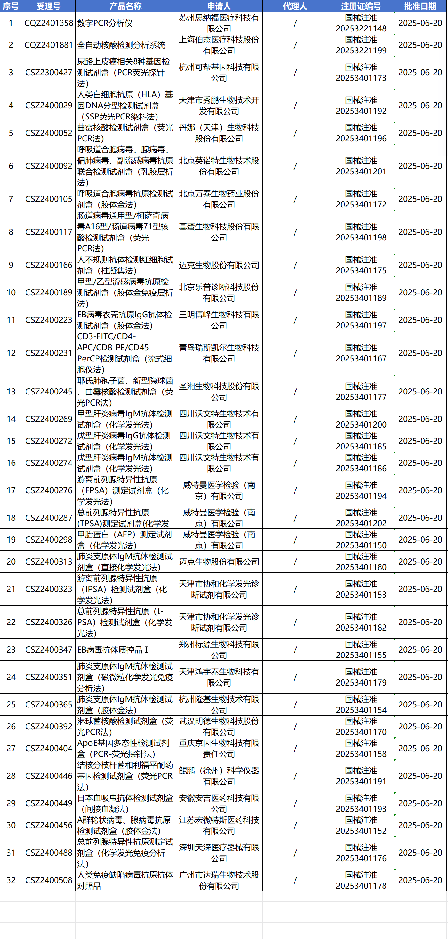 6月23日,国家药监局审批通过了63款医疗器械产品,32款IVD新品获批上市。