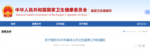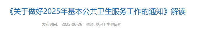 2025年6月26日,国家卫生健康委、财政部、国家中医药局、国家疾控局四部门联合发布《关于做好2025年基本公共卫生服务工作的通知》,以下简称《通知》。