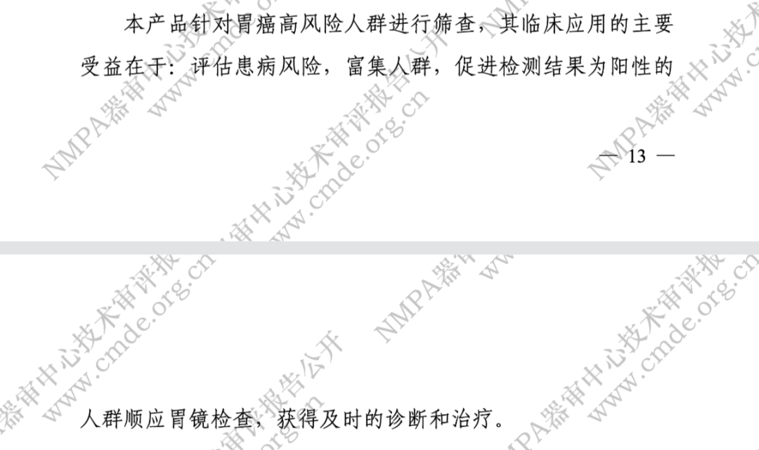 从审评报告的受益评估来看,这张胃癌筛查第一证和当时的肠癌筛查第一证逻辑是一致的: