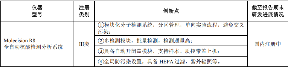 根据新产业半年报,目前R8全自动核酸检测系统正在注册中,采用模块化分子检测系统,定位高通量。