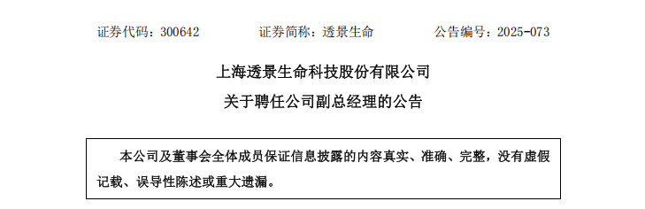 | 2025年10月22日,上海透景生命科技股份有限公司(证券代码:300642,证券简称:透景生命)今日发布公告称,公司于第四届董事会第十四次会议审议通过,正式聘任陈刚先生担任公司副总经理,任期自董事会审议通过之日起至第四届董事会届满时止。陈刚先生目前为透景生命控股子公司武汉康录生物技术股份有限公司的创始人、股东及总经理。此次任命由公司总经理姚见儿先生提名,并经董事会提名委员会事前资格审核通过,体现了公司对其专业能力与管理经验的充分肯定。根据公告附件披露的简历,陈刚先生出生于1966年10月,毕业于武汉大学,拥有硕士学位,为中级工程师。他在医药与医疗器械领域拥有近三十年的从业经验,曾于1997年7月至2012年12月期间服务于武汉人福医药集团股份有限公司,负责多家子公司的创建及中药、器械与商业板块的管理工作,具备全面的企业运营与战略规划能力。自2013年2月起,陈刚先生投身于武汉康录生物技术有限公司(后于2016年6月改制为股份有限公司),担任总经理至今。在此期间,他带领公司稳步发展,并于2017年7月起兼任武汉康录医学检验实验室有限责任公司的执行董事、经理及法定代表人,进一步拓展公司在医学检验领域的影响力。陈刚先生在中国医学装备协会病理装备分会、中国非公立医疗机构协会病理学专委会及湖北省药物与医疗器械临床评价学会等多家行业组织中担任常务委员或常务理事职务,显示出其在专业领域的广泛认可与影响力。公告强调,陈刚先生具备与其行使职权相适应的任职条件,符合《公司法》《深圳证券交易所上市公司自律监管指引第2号——创业板上市公司规范运作》及《公司章程》中关于高级管理人员的任职要求。其与公司控股股东、实际控制人及其他董监高不存在关联关系,亦未持有公司股份,且无任何不良诚信记录或受到监管处罚的情形。分析认为,此次任命是透景生命在整合子公司资源、强化集团化管理方面的重要一步。陈刚先生作为武汉康录的核心创始人及管理者,其升任母公司副总经理,有望进一步推动母公司与子公司之间的战略协同与技术融合,提升整体运营效率与市场竞争力。透景生命表示,此次高管聘任将有助于公司优化管理结构,增强核心团队的行业经验与执行力,为公司在生命科技领域的持续发展注入新的动力。 |