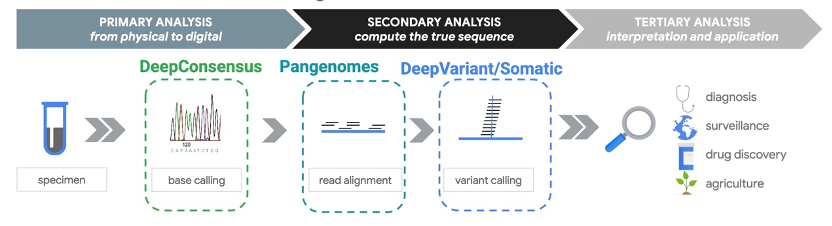 NGS的竞争已经不言自明了,随着玩家越来越多,正面PK也越来越常见了。这其中,由于高通量测序仪大多针对大样本量的重点核心客户,每台仪器每年所能拉动的耗材营收蔚为可观,因此超高通量的竞争尤为激烈。 Illumina称Ultima的测序质量欠佳 2025年10月7日,行业领头羊Illumina在其官网上发表了自家旗舰机NovaSeq X针对竞争对手Ultima Genomics UG 100平台的benchmark(全面基准测试)。 Illumina作为测序行业的传统领导者,这似乎也是破天荒第一次在官方渠道发布针对竞争对手的内部测评和性能对比报告。这无疑是在向外界透露出自己对于UG 100正在崛起的竞争威胁的重视程度,但同时也暗示了高通量测序市场竞争的白热化。 Illumina最终得出结论:NovaSeq X的测序质量要优于UG100平台。 报告指出,Illumina在测量全基因组测序(WGS)准确性时,使用了完整的NIST v4.2.1基准(涵盖所有基因组区域),而Ultima Genomics则使用自定义的“高置信区域”(HCR),排除了4.2%的基因组(包括高GC区域、重复序列和长于12个碱基的同聚物区域),这种排除策略掩盖了UG100在难点区域的性能短板。 具体数据显示,与NovaSeq X系列相比,UG100平台在SNV(单核苷酸变异)错误上多出6倍,在Indel(插入/缺失)错误上多出22倍(基于完整NIST基准)。例如,在Homopolymer区域,UG100的Indel准确性随同聚物长度增加而显著下降,而NovaSeq X则保持稳定。此外,UG100的HCR排除了793个基因中的致病性变异,限制了其在疾病相关基因分析中的完整性。Illumina借此强调,NovaSeq X系列提供了更全面、高精度的基因组覆盖,而UG100通过“掩码”难点区域虚标性能。 谷歌的研究提示MGI/CG更胜一筹 在罗氏的Axelios测序平台等其他高通量测序系统还没有完全进入市场之前,高通量测序仪市场目前是三强争霸的局面:Illumina的NovaSeq X系列、Ultima Genomics的UG100,以及华大智造MGI/Complete Genomics的T系列(如DNBSEQ-T1+/T7+/T7/T20等)。 三个平台所采用的测序原理各不相同,但这些平台均以“Tb级别数据产出”和“年处理上万个WGS样本”为卖点,推动行业进入高效生产阶段。 就在Illumina与Ultima争得不可开交的时候,发生了一个有意思的事情... 在最近结束的2025年美国人类遗传学学会(ASHG)年会上,谷歌旗下的谷歌研究院(Google Research)团队发表报告,其针对Complete Genomics的T1+测序数据优化了DeepVariant算法,并与Illumina NovaSeq X和Element AVITI平台的数据进行基准对比。结果提示,基于MGI/CG平台数据训练的专项DeepVariant模型,在变异检测精度上全面超越了Illumina平台。 Illumina说自己的测序质量比Ultima好,谷歌又称MGI/CG的数据比Illumina的还要好。这两件事情联系起来看,似乎三家的名次好坏一下子就明了了... 这不,SOPHiA GENETICS的CEO Jurgi Camblong直接在Alex Dickinson在领英发布的观点中评论指出,当前测序平台的PK不应该漏提 MGI。 补充三家PK的一些重要背景 在正式分析谷歌的这份研究报告之前,我们先来了解一些行业背景。基于已有变异参考集(也就是所谓的真值集)进行变异检测精度评估,借此来评估各测序仪厂商和分析软件服务商在其测序数据质量和分析算法方面的能力,这已经成为行业的一种常见做法。 不同基准测试所使用的真值集却不太一样,如可能是GIAB(Genome-In-A-Bottle)NIST v4.2.1,或者是HG002 T2T-Q100-v1.1,或者是Platinum Pedigree等。由于这些参考集中所包含的变异不尽相同,因此与不同真值集对比所得到的结果也会有不小差异。 在Illumina NovaSeq X针对UG100的对比中,两者都是使用瓶中基因组HG002样本,针对NIST v4.2.1真值集进行基准测试。Illumina在 NovaSeq X Plus系统上使用10B 试剂盒产生了WGS数据,使用自己的DRAGEN v4.3 进行了二级分析。数据包含重复序列,并下采样至 35x覆盖深度。而Ultima Genomics 的 WGS 数据来源于一个以变异检出格式 (VCF) 发布的公开数据集,该数据集在 UG 100 平台上生成,覆盖深度为 40x,不包括重复序列,并使用针对 Ultima Genomics数据优化的的 DeepVariant 软件进行了分析。 说回到谷歌和DeepVariant。 谷歌研究院是谷歌面向公众的科研成果门户,致力于开展计算机科学及相关领域的基础研究和应用研究,推动前沿技术发展,提供对未来科技的深入洞察。他们其中一个小型研究团队早在2015年就开始了一些基础研究工作,将深度学习应用于各种基因组测序挑战,使其更快、更准确、更高效。他们在2016 年赢得了 PrecisionFDA Truth Challenge 挑战赛,在2018年公开发布了这款基于深度学习的变异识别工具 DeepVariant,随后便开启了其在基因组学领域长达十年的探索之旅,陆续开发并发表了一系列应用于基因组学的相关算法和工具。本质上,谷歌在DeepVariant上的开发和持续优化是不带功利性质的,于是谷歌基于DeepVariant所进行的对比研究也代表了一种客观的第三方视角。 DeepVariant的开发借鉴了谷歌在图像识别方面的经验,将数据可视化与深度学习相融合,采用卷积神经网络(CNN)推理来实现从NGS数据中调用遗传变异。 其工作流程首先从BAM文件中的读取对齐数据中识别候选变异位点,然后生成以这些位点为中心的堆叠图像(pileup images),每个图像宽度为221 bp,并显示诸如碱基质量、映射质量、读取链方向等特征。这些图像被输入到CNN模型中,模型将每个候选位点分类为不同的基因型,例如参考型、杂合变异或纯合替代变异。在实现方式上,DeepVariant采用多步骤管道:包括数据预处理以生成图像、使用预训练网络进行模型推理(原始版本基于TensorFlo