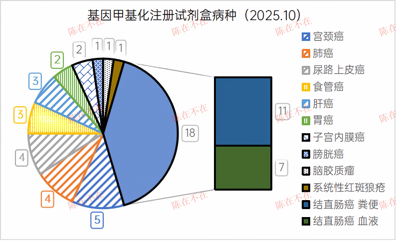 根据最新消息,艾米森公司新获尿路上皮癌甲基化试剂盒,双基因:VIM和新发现未命名的一个新基因,AL021918.2。翱锐生物新获6基因肝癌甲基化试剂盒。 至此,2025年甲基化新批证12个。 合计44张证,涉及到30家公司。 武汉艾米森获证5个,加上凯普的宫颈癌,合计6个,一骑绝尘! 艾克伦,博尔诚,达健医学3证紧随其后。 43个证与肿瘤相关。 另外1个为系统性红斑狼疮。 肠癌证以17张遥遥领先,其中血液7个,粪便10个 其次为宫颈癌,5张。 尿路上皮癌和肺癌,4张。 甲基化检测,1个数字PCR,其余均为Q-PCR 有两个试剂盒含基因突变 还有1个试剂盒含大便隐血 收费及医保,本次无更新 以上数据,截止到2025年10月31日。 |