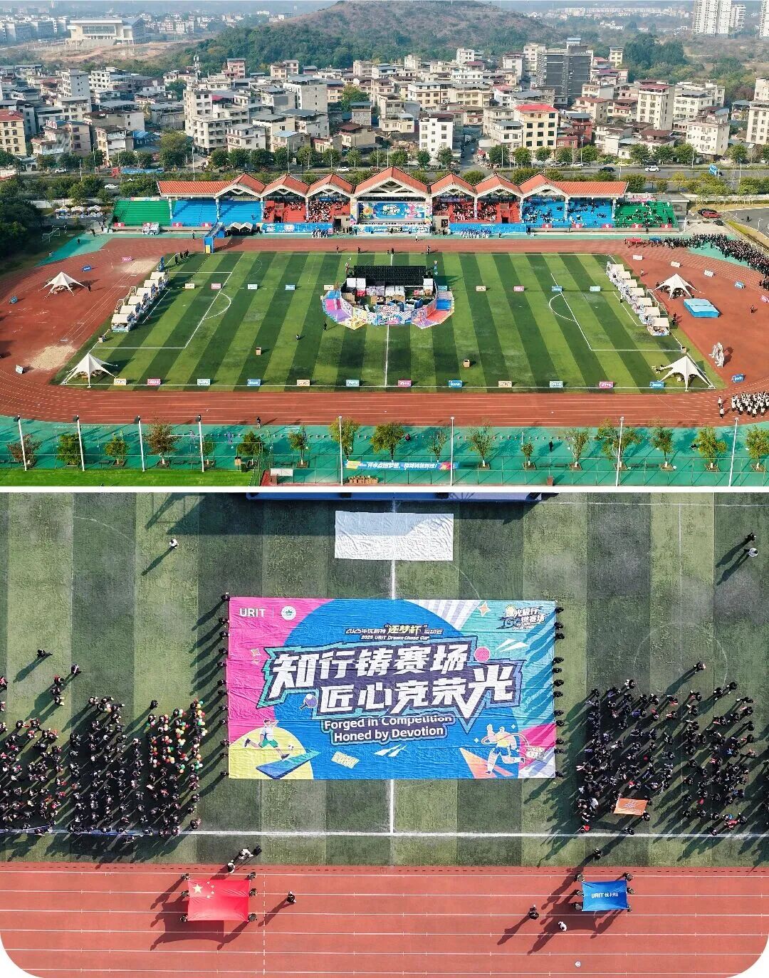 12月初的桂林,天气还挺暖和。优利特集团在桂林医科大学临桂校区的田径场上,办了第二届“逐梦杯”运动会。说是运动会,阵仗不小,主题叫“逐光极行,Go燃赛场”,还拉来了中国银行、桂林银行好几个合作赞助商。