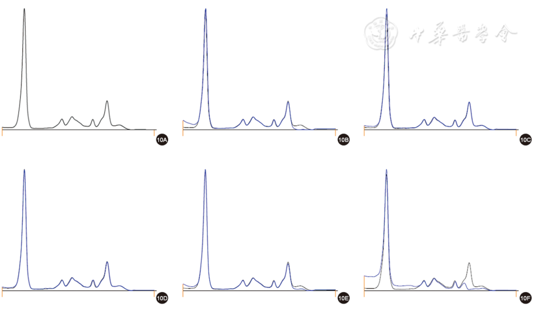 实验室应全面研读原始图谱数据,定性分析检测样本中是否存在M蛋白及其类型(重链与轻链组合)。图谱分析时,先将目的抗体泳道图谱叠加参考泳道图谱进行曲线比较,查找异常峰的消除或减少(统称为消减)情况。