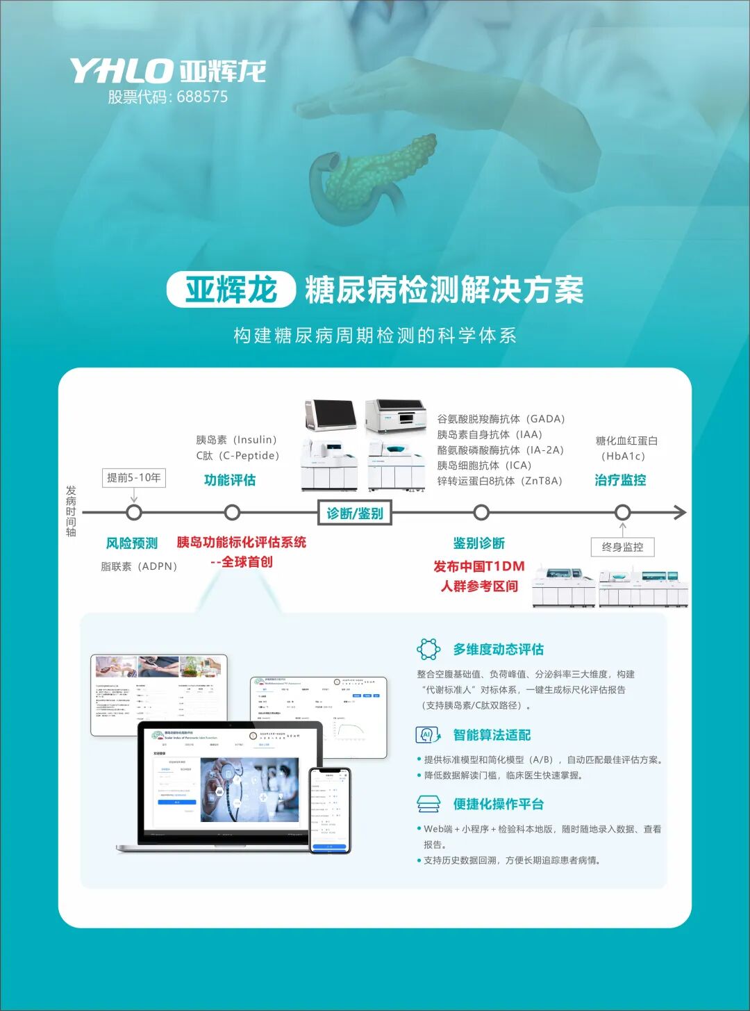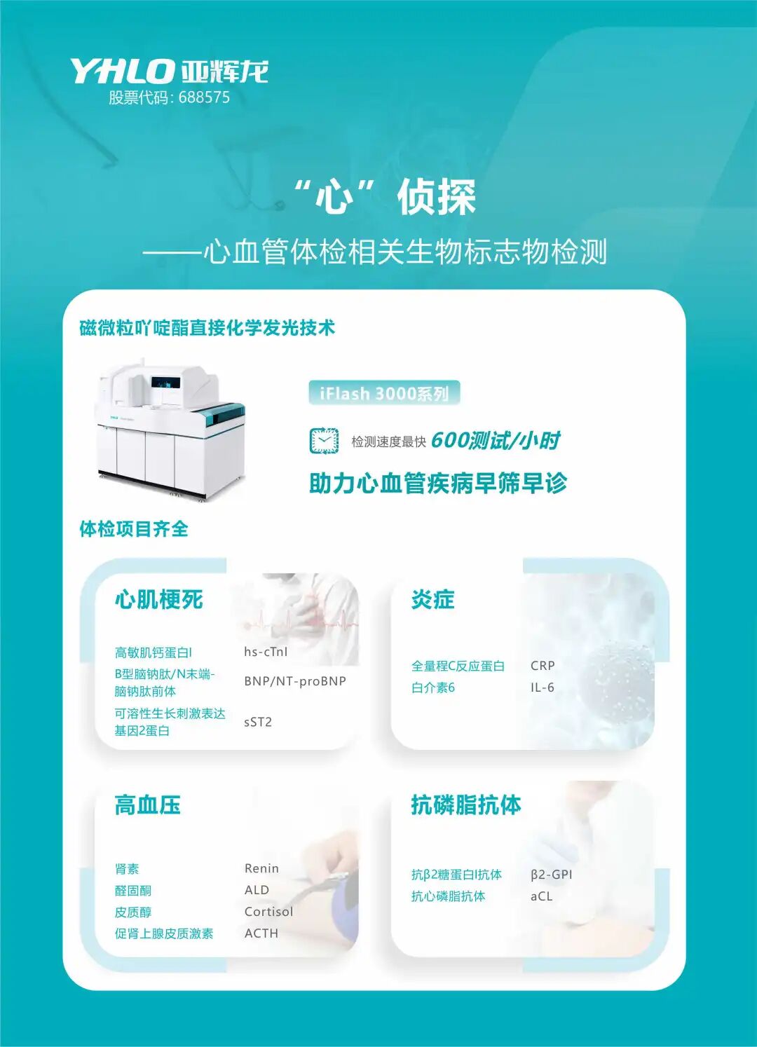 1 引言 在我国,慢性病已经成为影响居民健康的首要问题。数据显示,慢性病相关死亡占我国总死亡人数的近九成,高血压、心脑血管疾病、糖尿病等慢病,不仅患病率持续攀升,还呈现出明显的年轻化趋势。 体检,正在成为慢病管理的第一入口。但一个现实问题也愈发凸显:传统体检更多停留在“发现异常”,却很难支撑真正有价值的慢病管理。项目越做越多、报告越出越厚,但风险是否被真正识别、阶段是否被准确判断,依然是体检面临的核心难题。 慢病体检,正在从“是否异常”的单点判断,逐步走向支持风险评估与人群分层的能力建设。在当前阶段,体检机构与IVD企业的核心价值,仍主要集中在“做判断”——通过更科学的指标组合与评价逻辑,为后续的随访管理与干预决策提供可靠依据。 2 亚辉龙的慢病布局逻辑 如果要在慢病体检中建立真正可落地的体系,必须回答一个关键问题:哪些慢病,最具体检管理价值? 亚辉龙在慢病领域的布局,并非简单叠加检测项目,而是围绕“风险可前移、判断可持续、结果可评估”三大原则,构建以心肌相关慢病、糖尿病及代谢异常、自身免疫异常为核心的慢病体检体系。其中: . 心肌与心血管相关慢病具有突发性强、后果严重的特点,早期风险识别价值极高; . 糖尿病及代谢异常是典型的长期演进型慢病,风险前移后,体检管理空间巨大; . 自身免疫异常则往往隐匿进展、症状不典型,却与多系统慢性疾病密切相关,是慢病长期管理中容易被忽视、却极具筛查价值的一类风险。 这三类慢病从不同维度,覆盖了当前体检人群中最具管理潜力、最值得前移识别的核心健康风险,也构成了亚辉龙慢病体检布局的底层逻辑。 3 病管理方案拆解:从检测到判断的能力差异 4 亚辉龙一站式体检方案: 让慢病体检更系统 在深耕心脑血管、糖尿病及自身免疫等核心慢病领域的同时,亚辉龙也构建了覆盖12大类疾病的完整化学发光产品体系,为健康体检提供从基础筛查到风险分层的系统化支持。 亚辉龙健康体检产品矩阵涵盖:自身免疫、心脑血管、甲状腺、肿瘤标志物、激素、糖尿病、传染病、肝病、优生优育、骨骼代谢等领域,可满足不同体检机构、不同人群的多层次体检需求。 精准分层、个性定制是亚辉龙体检方案的一大特色。围绕慢病风险管理需求,亚辉龙为体检机构设计了多类人群体检组合方案: 适用于年龄 ≥40 岁、有高血压或糖尿病、低密度脂蛋白胆固醇 ≥4.9 mmol/L、有家族史等人群,重点关注心肌标志物、炎症指标及相关风险因素。 适用于体重指数≥24kg、年龄≥35 岁、有家族史、缺乏运动、妊娠期糖尿病史等人群,核心项目包括脂联素、糖尿病自身抗体及胰岛功能评估。 面向反复乏力、关节不适、皮疹等非特异性症状人群,以及有自身免疫疾病家族史、长期炎症指标异常或伴随甲状腺功能波动者,重点涵盖自身抗体谱、自身免疫相关炎症指标及相关功能评估项目,用于支持自身免疫异常的早期识别与风险判断。 5 结束语 慢性病并不可怕,可怕的是“长期被忽视”。在慢病高发、节奏加快的当下,体检的意义正在从“发现问题”,走向“提前判断风险”。 从心脑血管到糖尿病,从自身免疫到代谢异常,亚辉龙希望通过更科学的检测组合与判断体系,帮助体检机构把健康风险尽可能留在体检阶段,为后续健康管理赢得时间窗口。 |