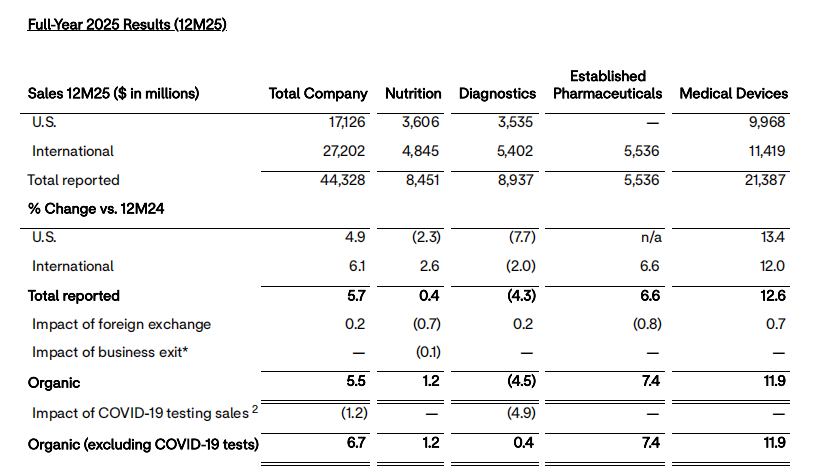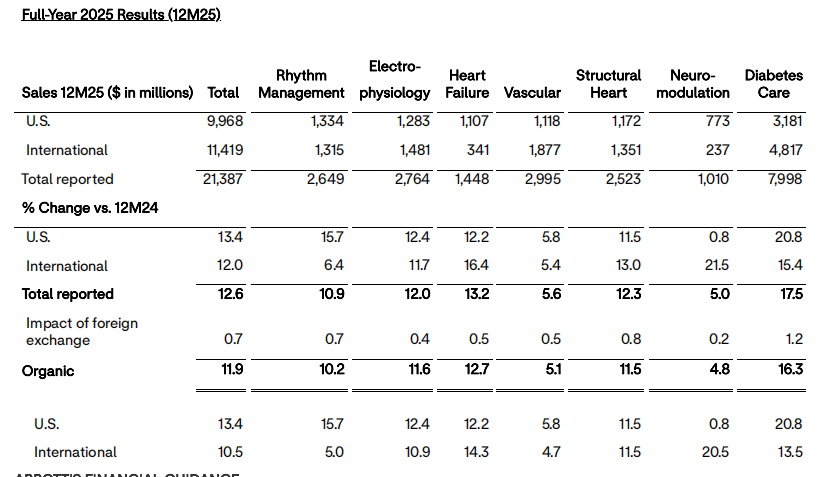 数据来源:Abbott Reports Fourth-Quarter and Full-Year 2025 Results; Issues 2026 Financial Outlook (Released Jan 22, 2026)