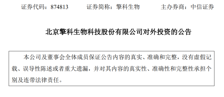 擎科生物1月21日发布公告称,为进一步提升北京擎科生物科技股份有限公司基因合成、抗体发现产品的交付能力,满足日益增长的下游市场需求,巩固公司在基因合成领域的行业地位,公司拟投资基因工厂建设项目,项目总投资额预计为人民币 60,019.25 万元(项目最终投资额以实际投资为准)。