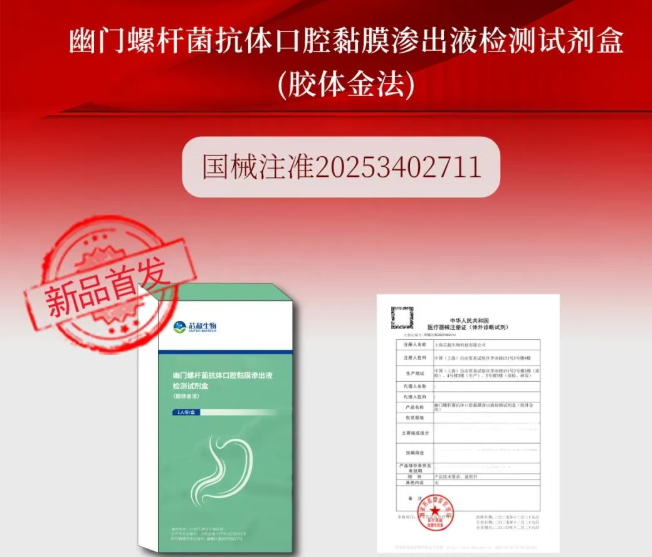 近期的上海芯超生物宣布幽门螺杆菌抗体口腔黏膜渗出液检测试剂盒获得三类证,就是符合这种论调。