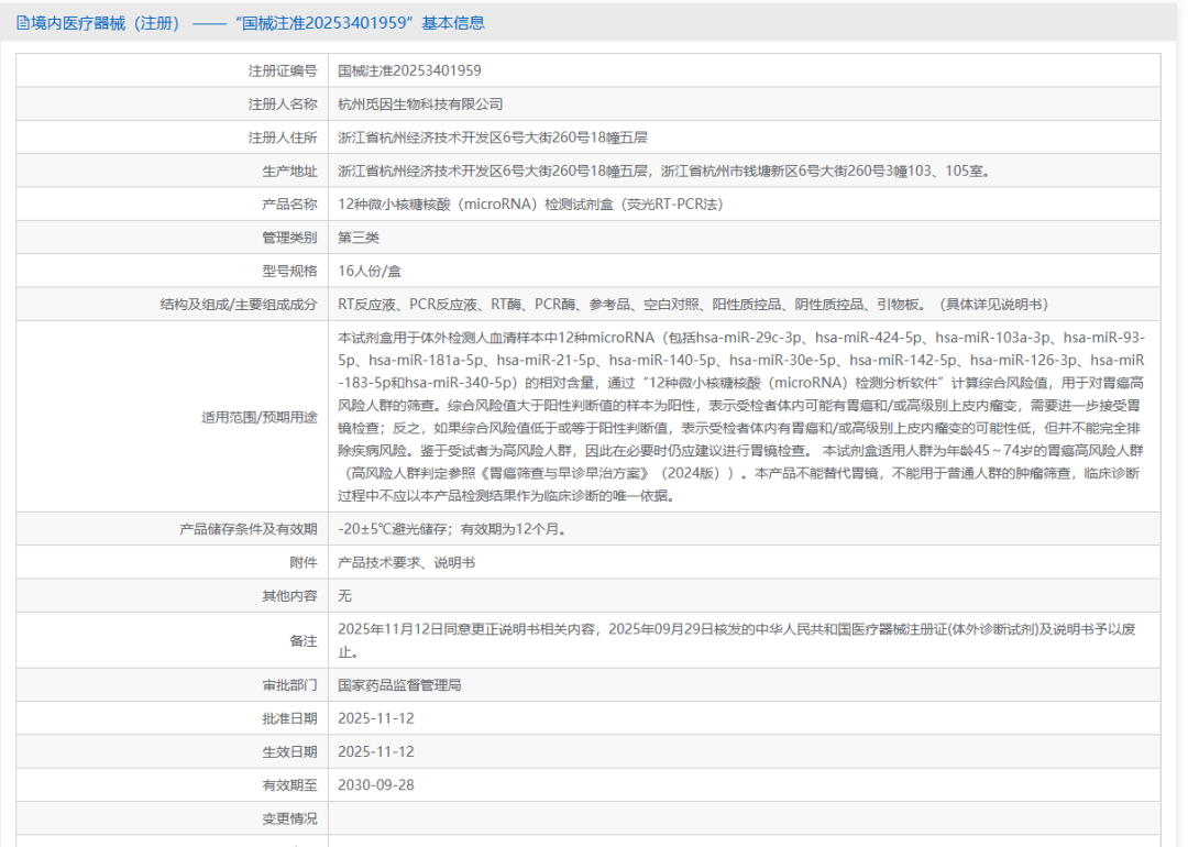 本文梳理了截至26年1月,在中国已获NMPA医疗器械注册证的miRNA试剂盒开发企业情况(类为主)。