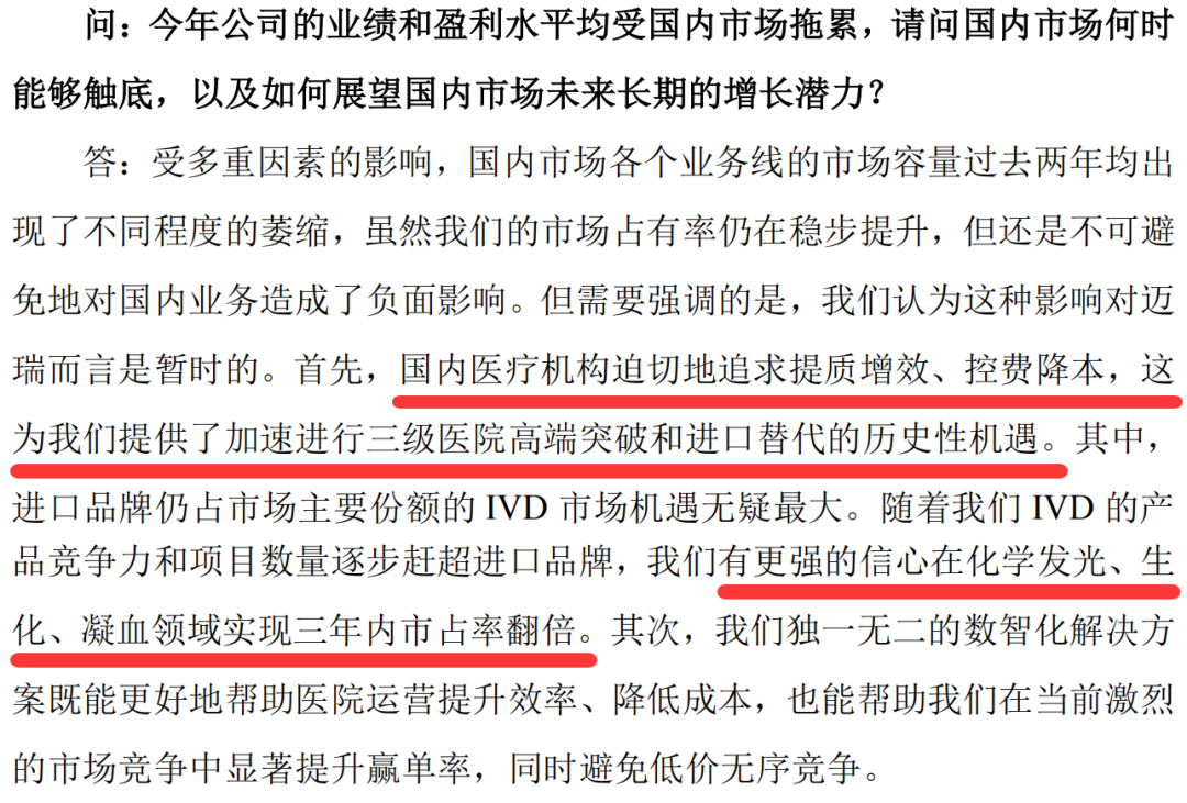 迈瑞曾在投资者交流中提出:三年内国内凝血诊断市场份额实现翻番。